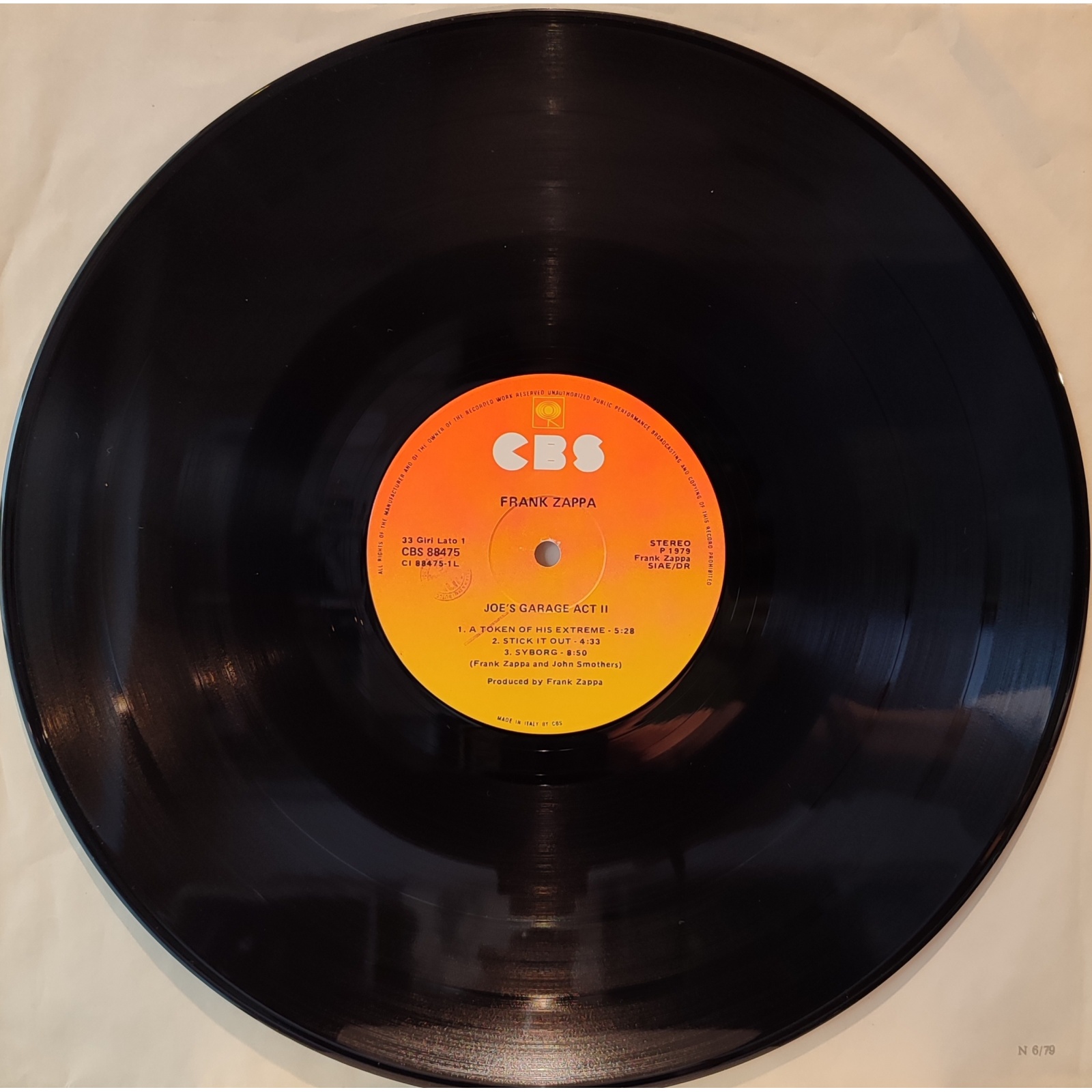 Prima edizione italiana, in vinile di seconda mano, dell'album "Joe's garage Acts II & III"del chitarrista e compositore statunitense Frank Zappa.