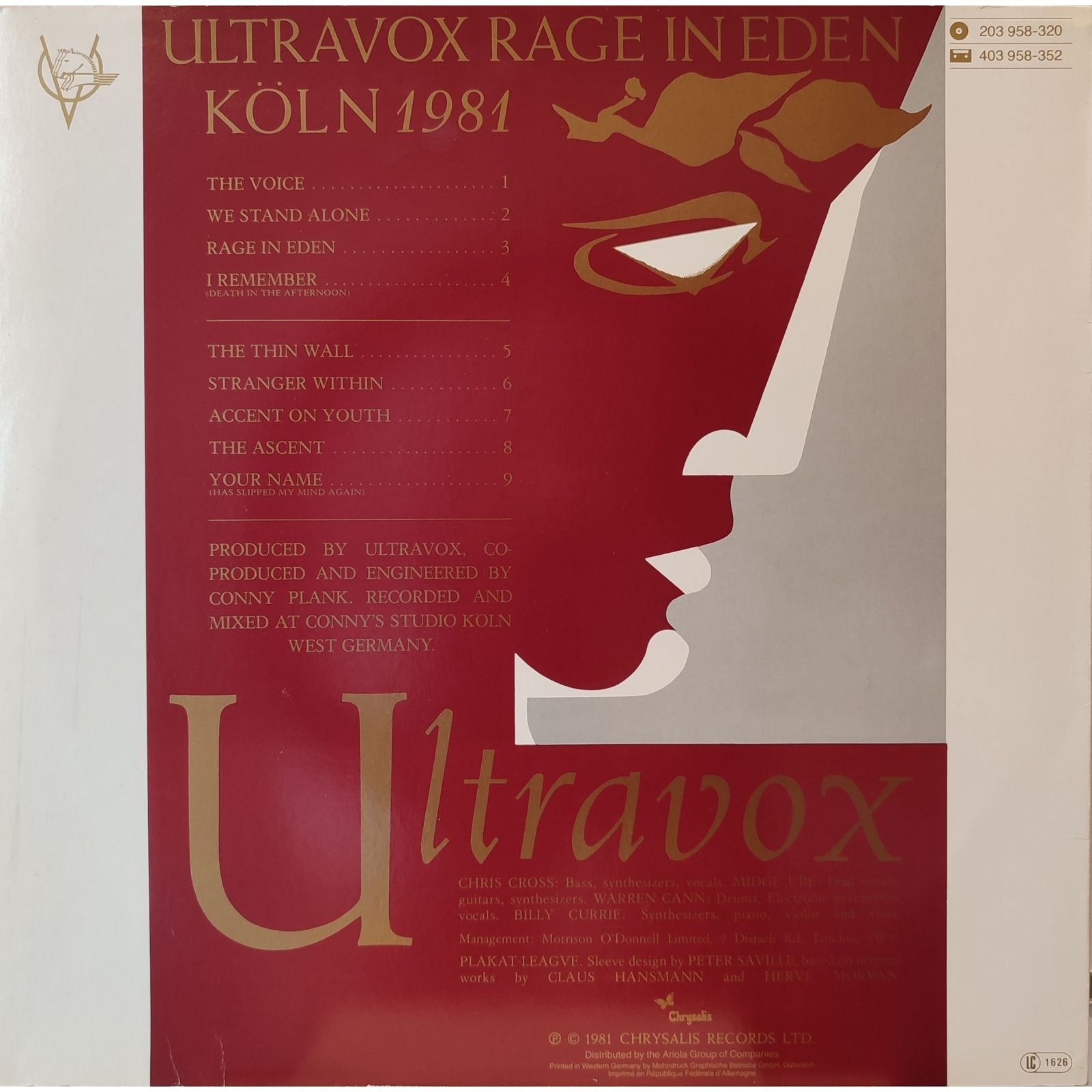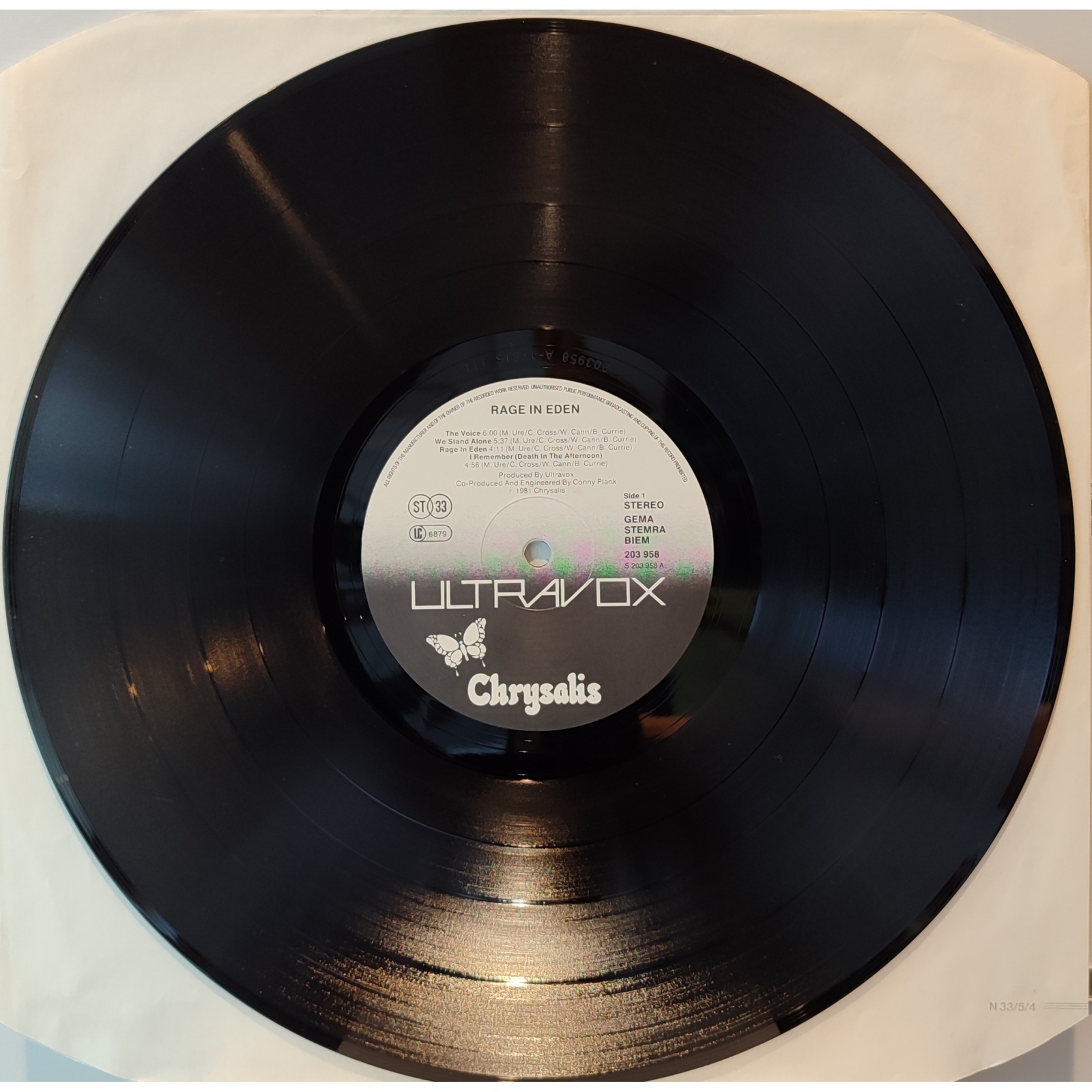 Prima edizione italiana, in vinile di seconda mano, del quinto album in studio del gruppo new wave inglese Ultravox,"Rage in eden".