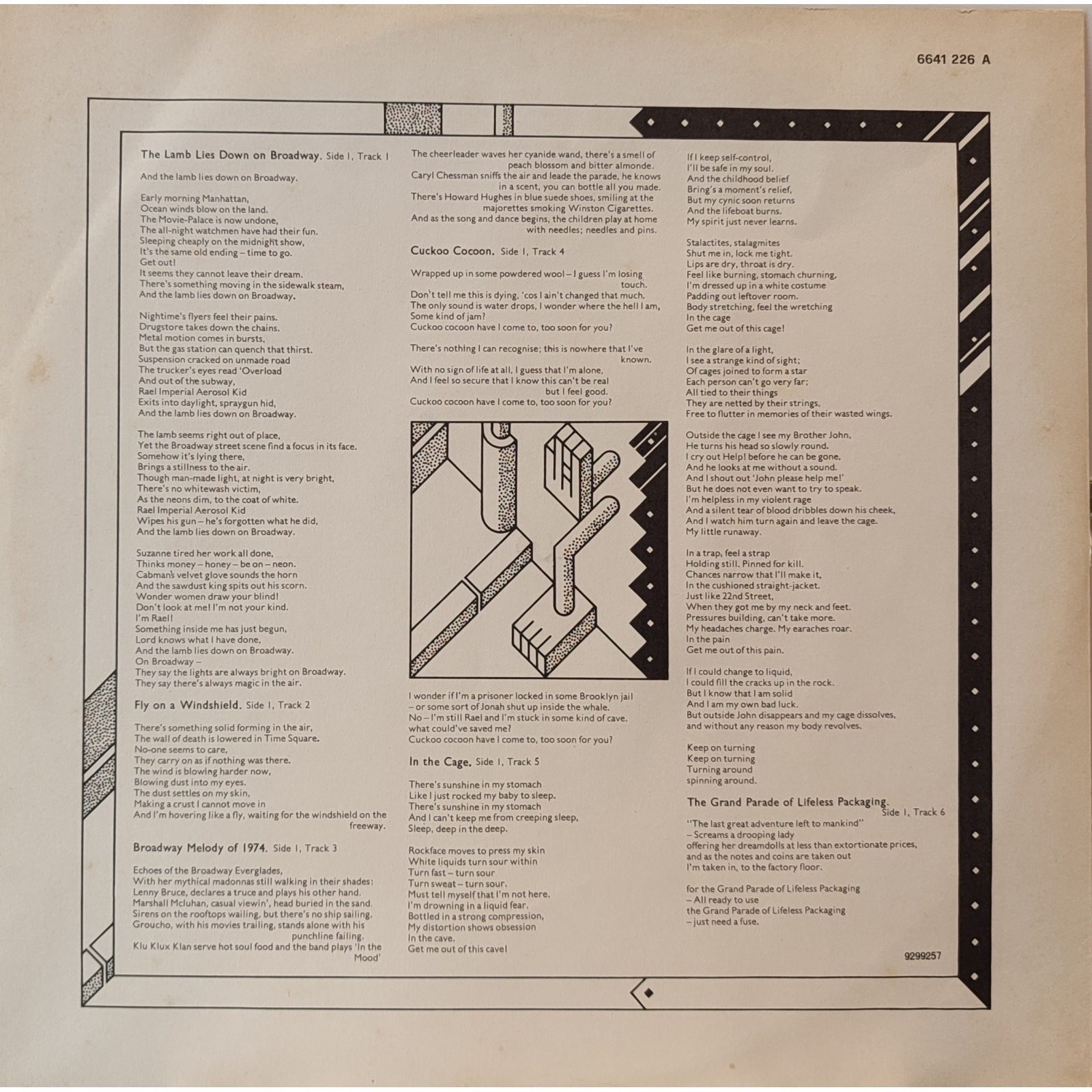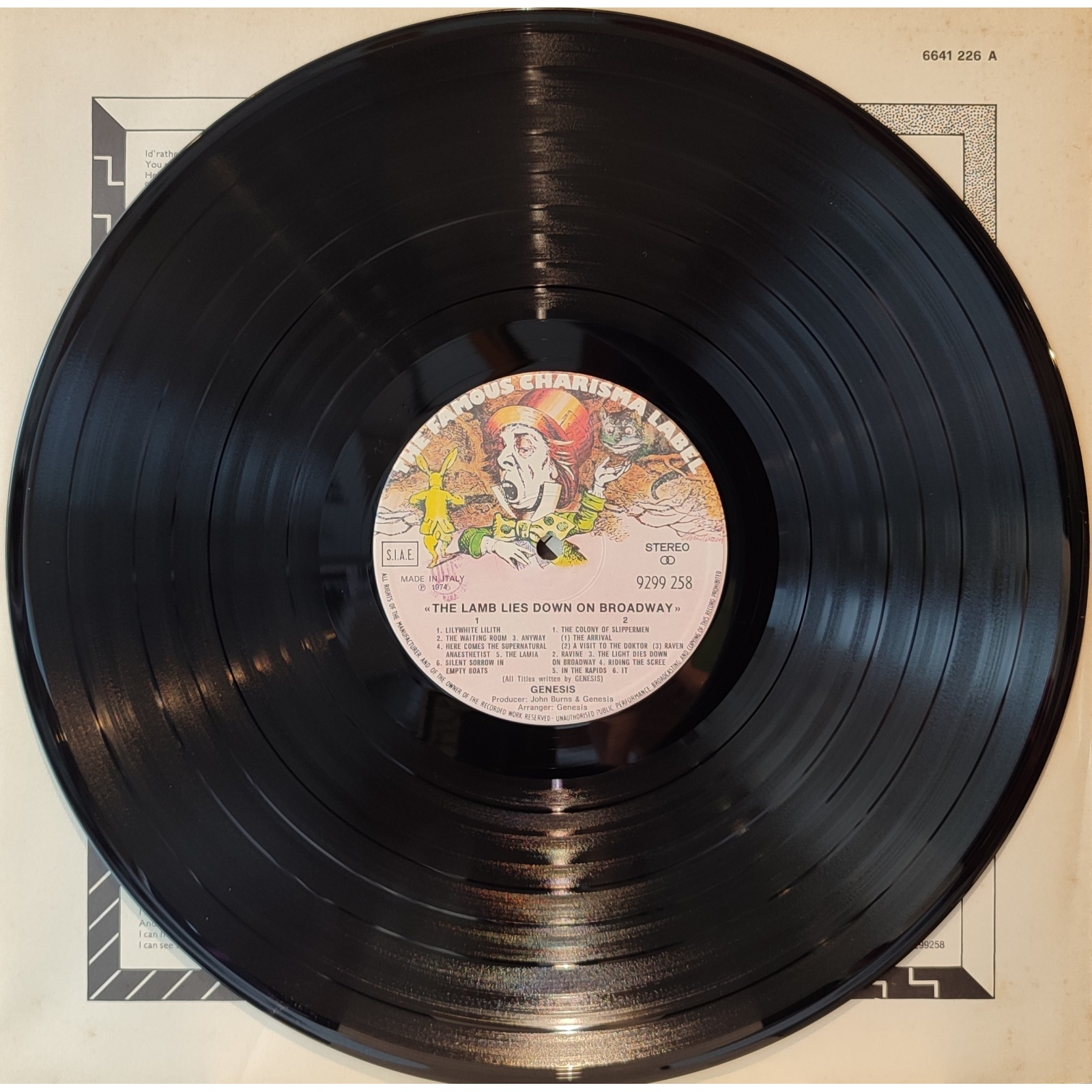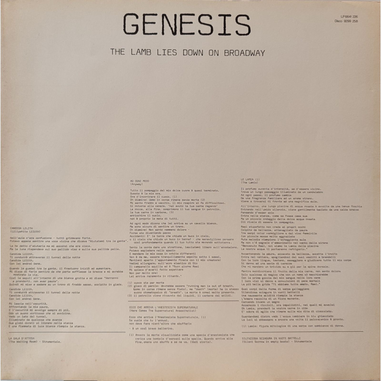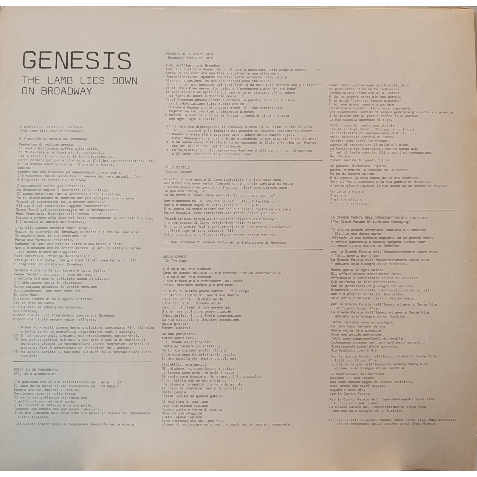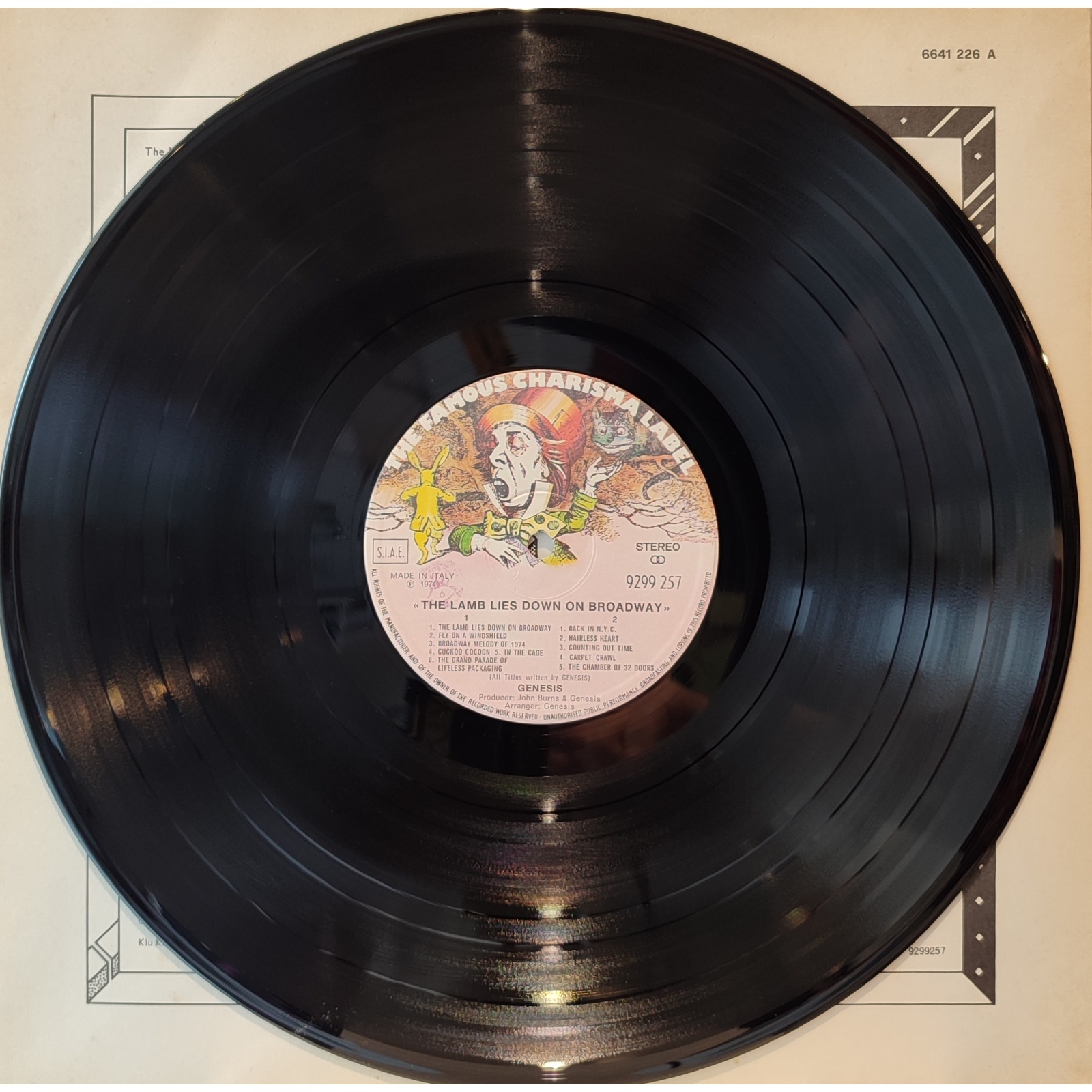 Perfetta prima edizione italiana, in vinile di seconda mano, del sesto album in studio del gruppo rock progressive britannico Genesis,"The lamb lies down on Broadway".
