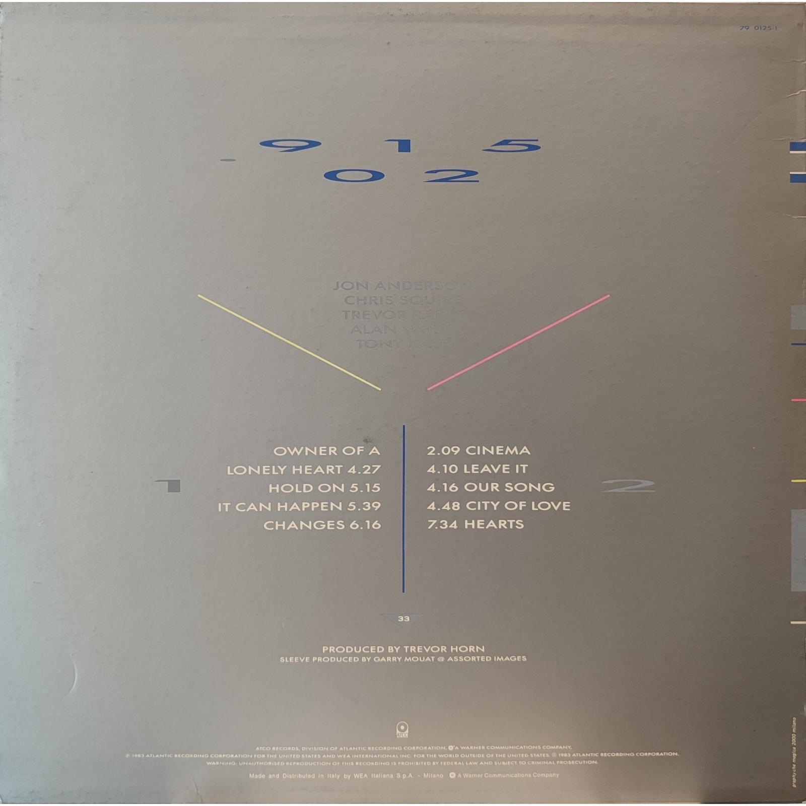 Prima edizione italiana, in vinile di seconda mano, dell'undicesimo album in studio del gruppo rock progressive britannico Yes, "90125".