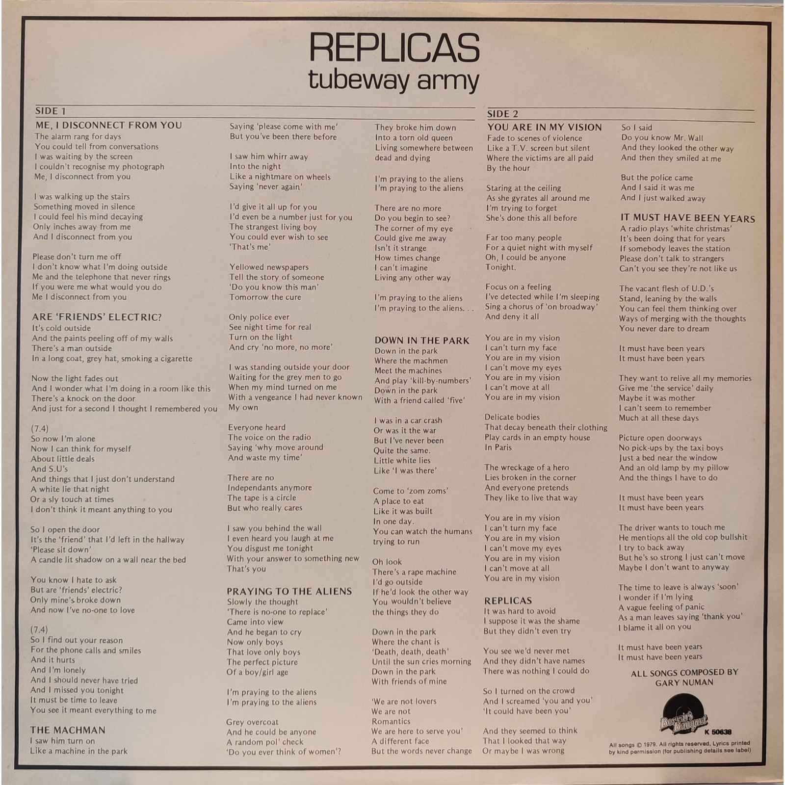 Prima edizione italiana, in vinile di seconda mano, del secondo album in studio dei Tubeway Army, "Replicas".