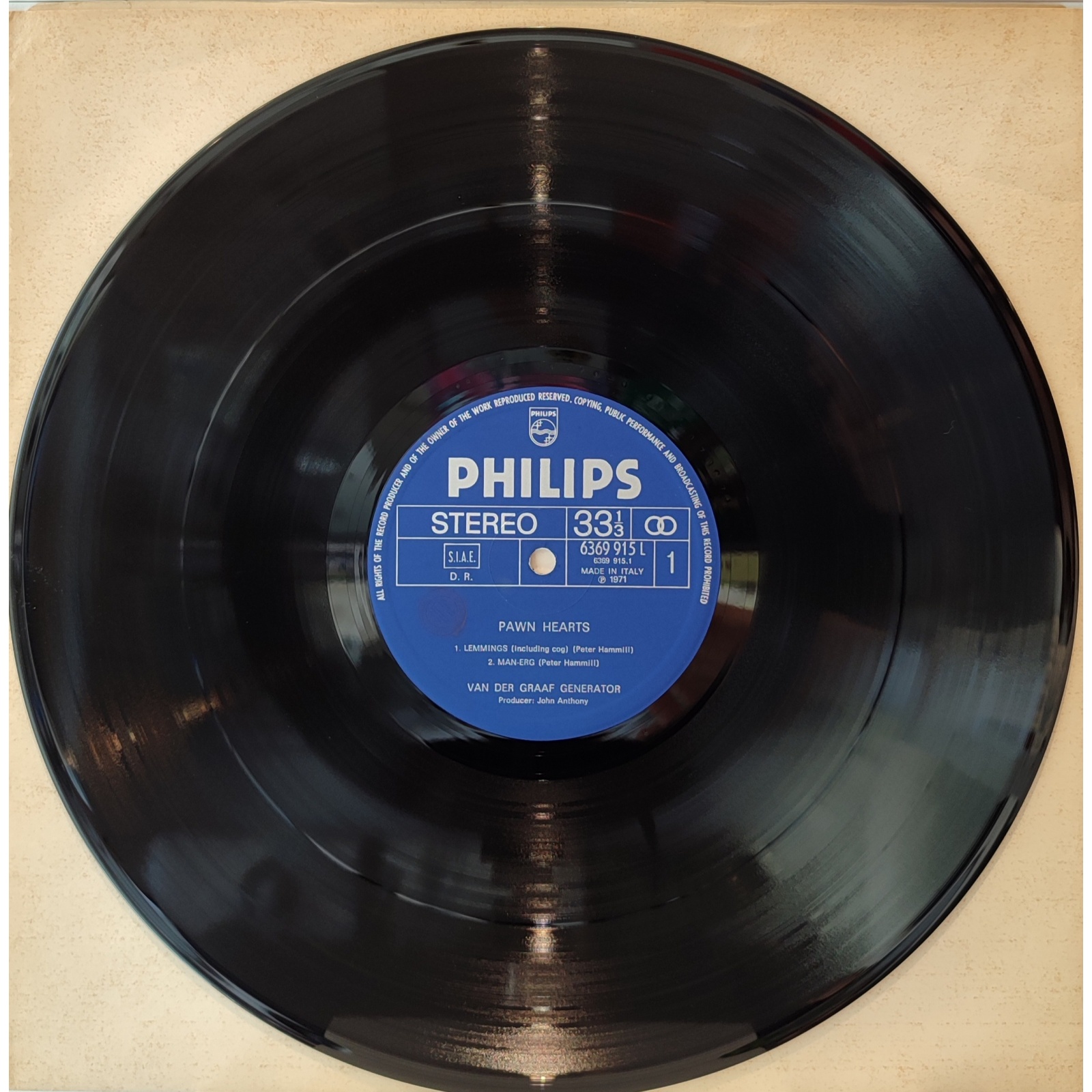 Ristampa italiana, in vinile di seconda mano, del quarto album in studio del gruppo progressive inglese Van Der Graaf Generator,"Pawn Hearts".