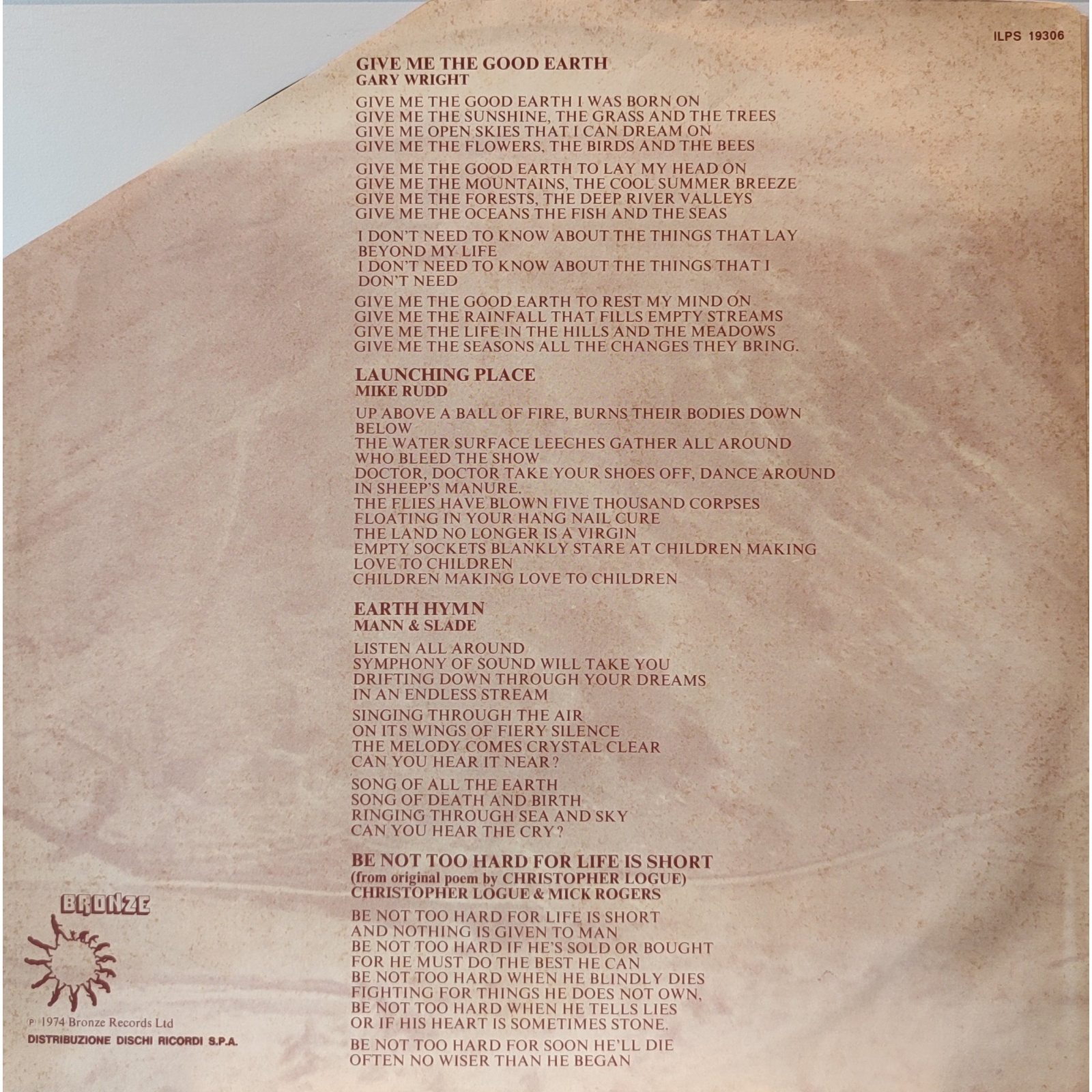 Prima edizione italiana, in vinile di seconda mano, del quinto album in studio del gruppo rock progressive britannico Manfred Mann's Earth Band,"The good earth".