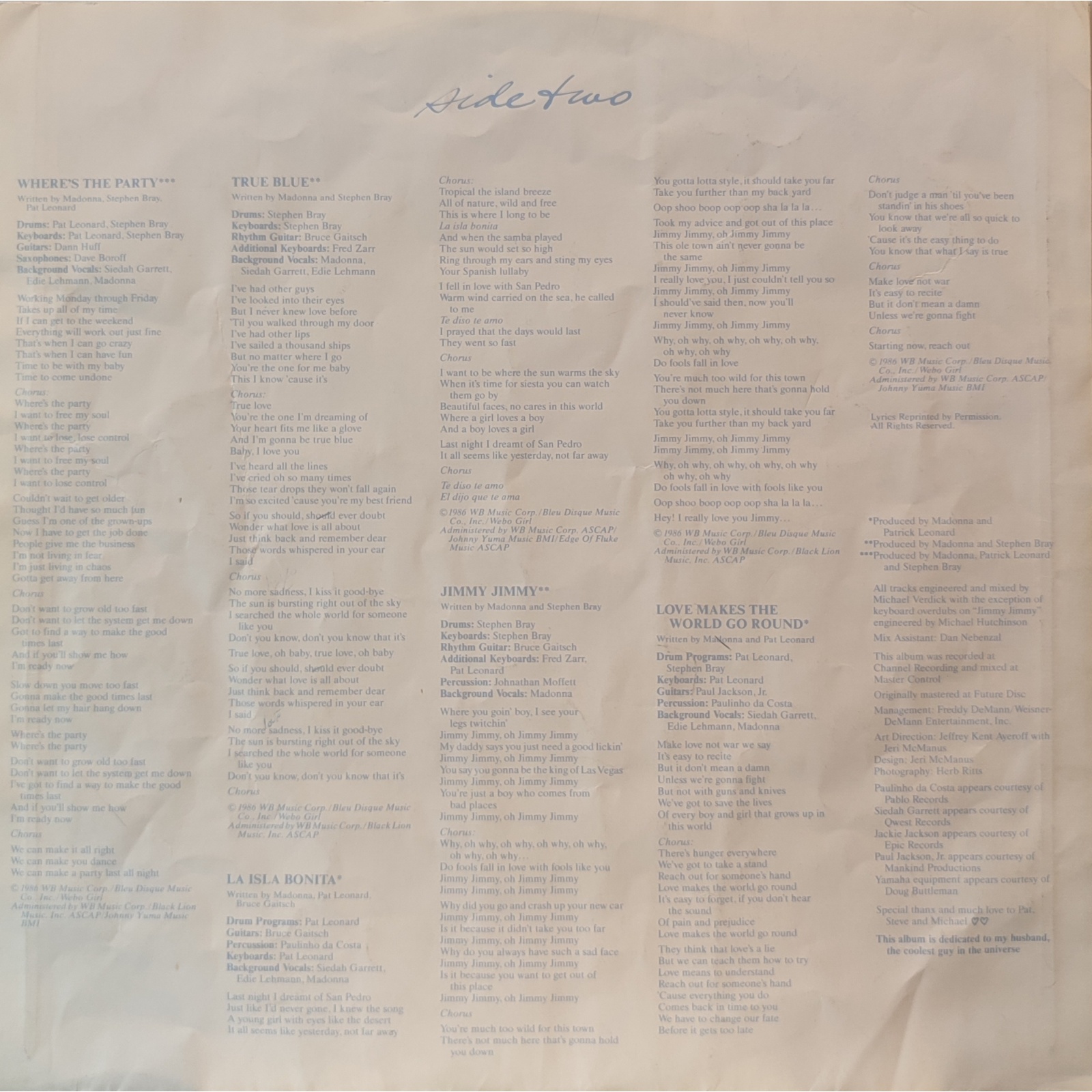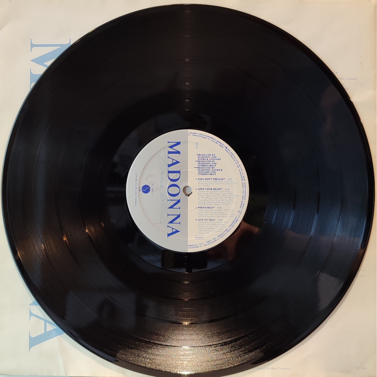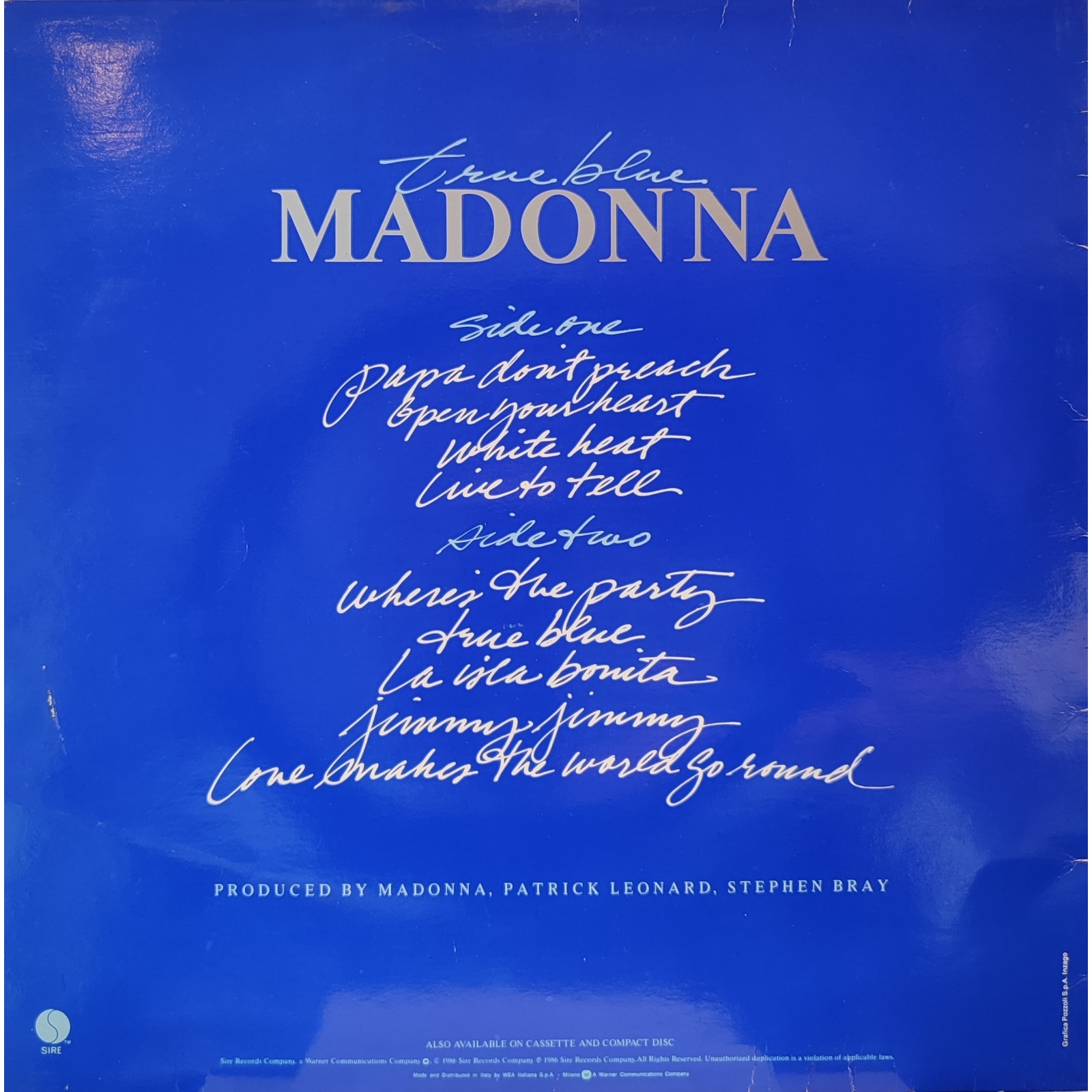 Prima edizione italiana, in vinile di seconda mano, del terzo album in studio della cantante statunitense pop Madonna, "True blue".