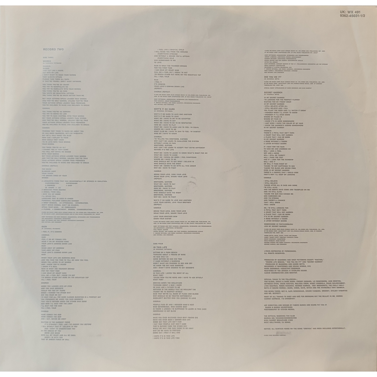 Datato 1992, etichetta Maverick Records, gatefold. Comprensivo di inner sleeve originali con testi.