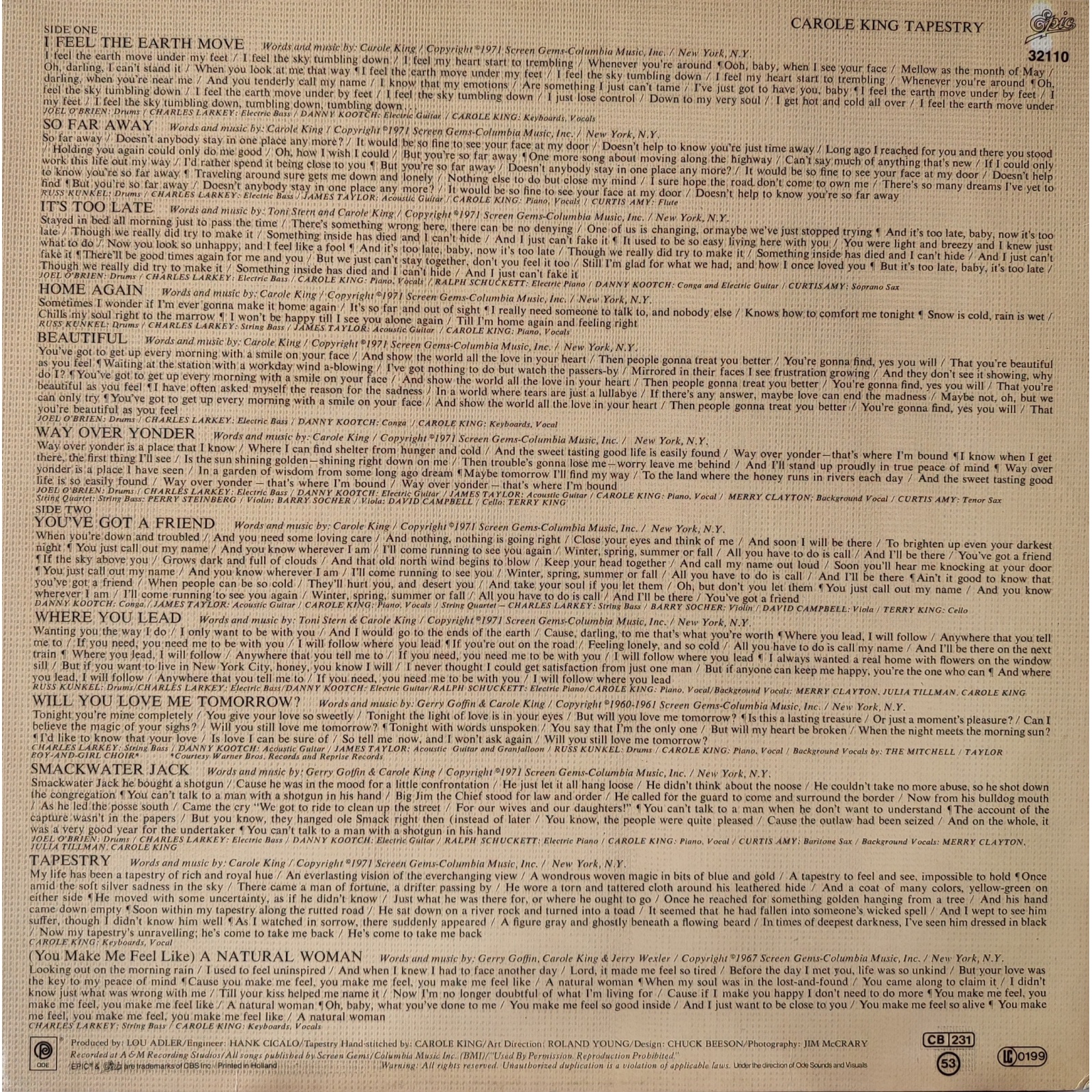 Ristampa olandese, in vinile di seconda mano, del secondo album in studio della cantautrice, compositrice e pianista statunitense Carole King,"Tapestry".