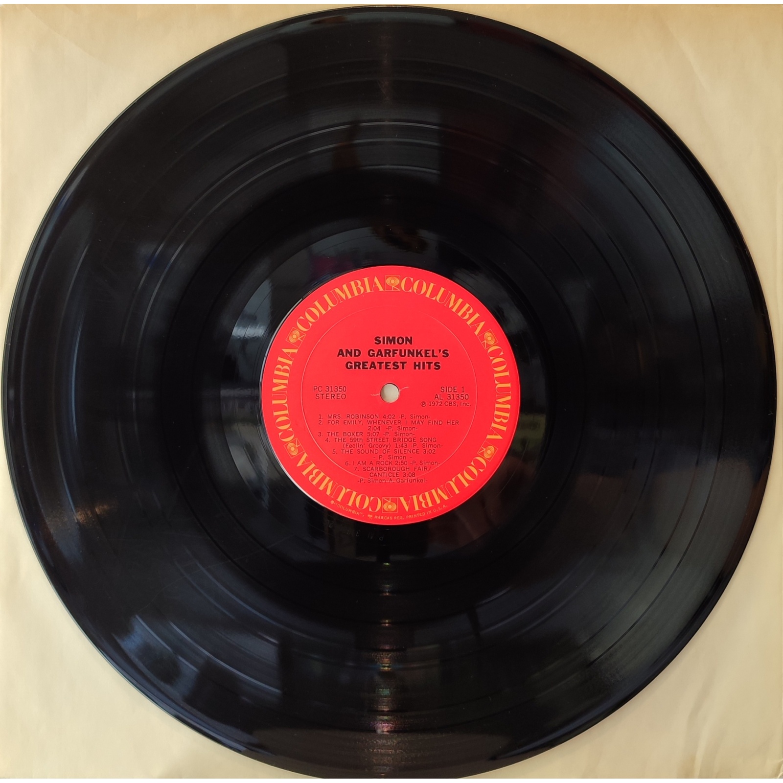 Ristampa americana, in vinile di seconda mano, della prima raccolta di successi del duo folk rock statunitense Simon and Garfunkel, "Simon and Garfunkel's greatest hits".