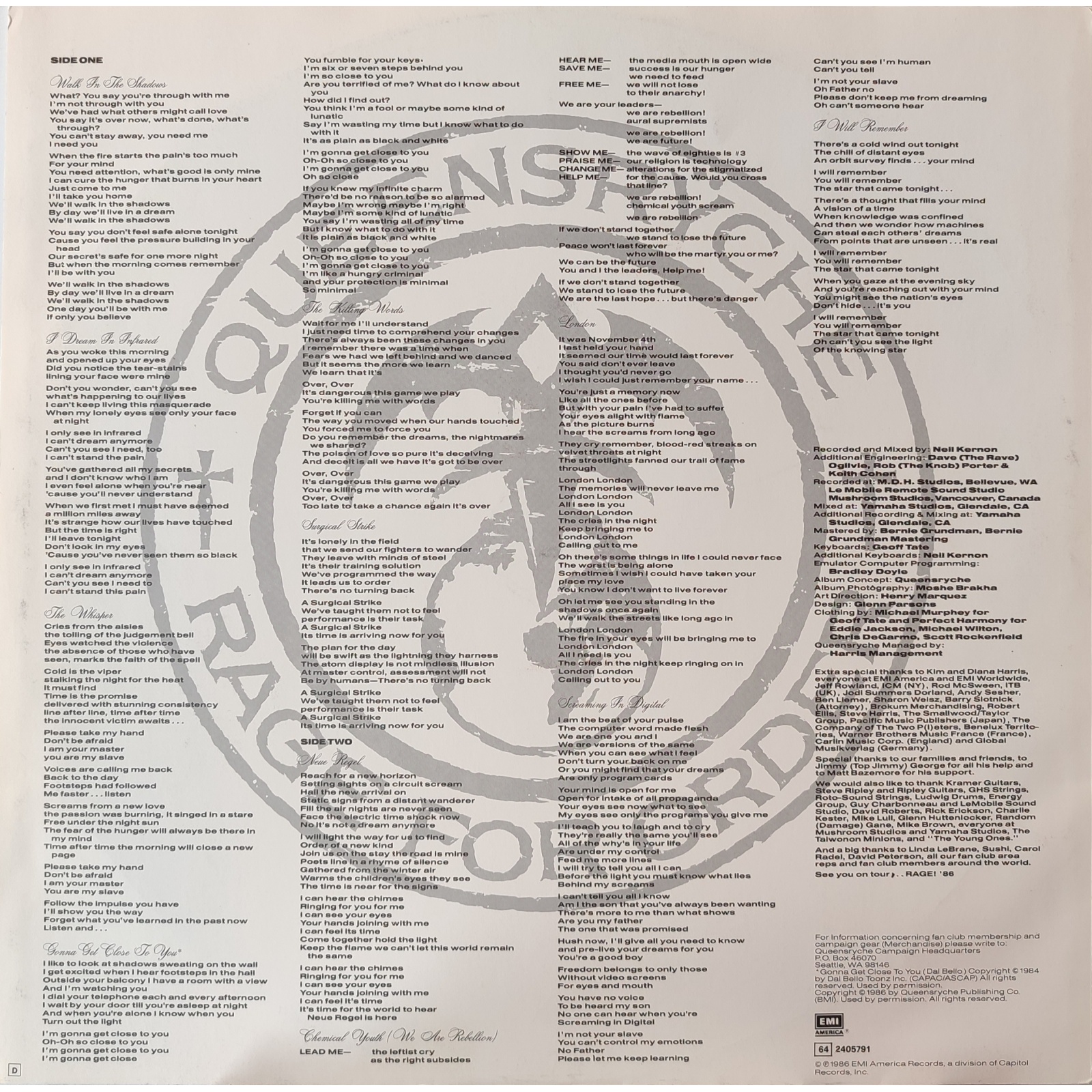 Prima edizione italiana, in vinile di seconda mano, del secondo album in studio del gruppo heavy metal statunitense Queensryche,"Rage for order".