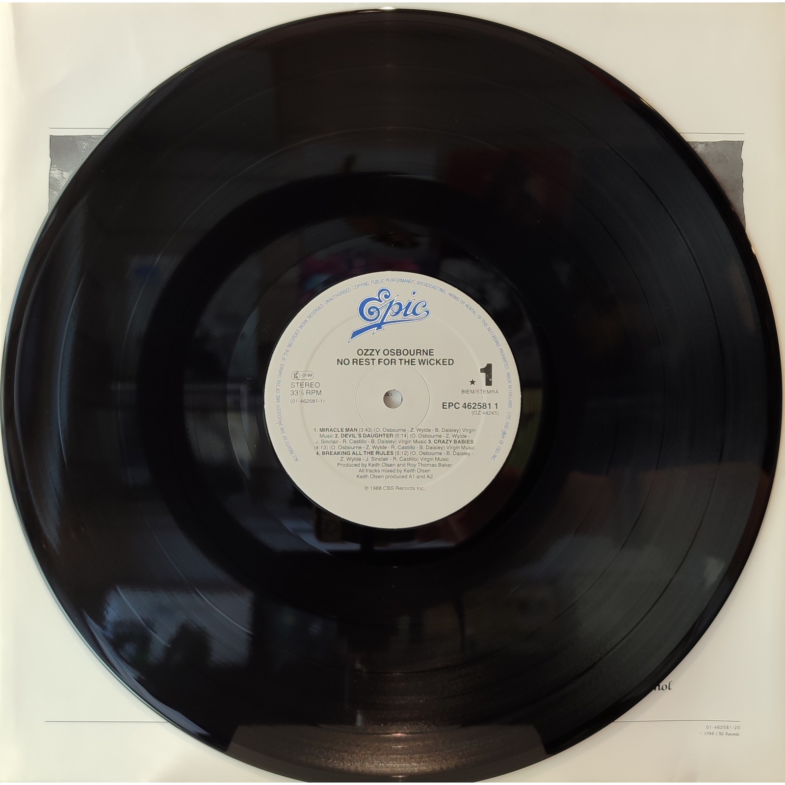 Prima edizione olandese, in vinile di seconda mano, del quinto album in studio del cantante britannico hard rock e heavy metal Ozzy Osbourne,"No rest for the wicked".