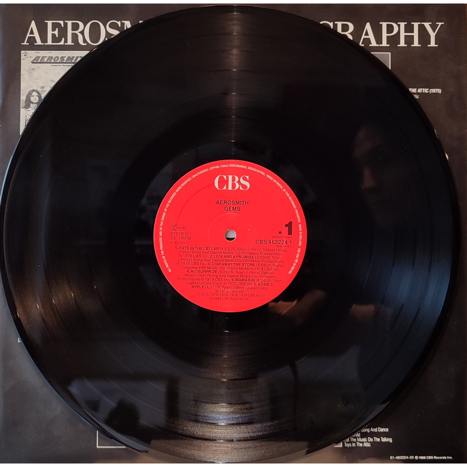 Prima edizione olandese, in vinile di seconda mano, della seconda raccolta del gruppo hard rock statunitense Aerosmith,"Gems".