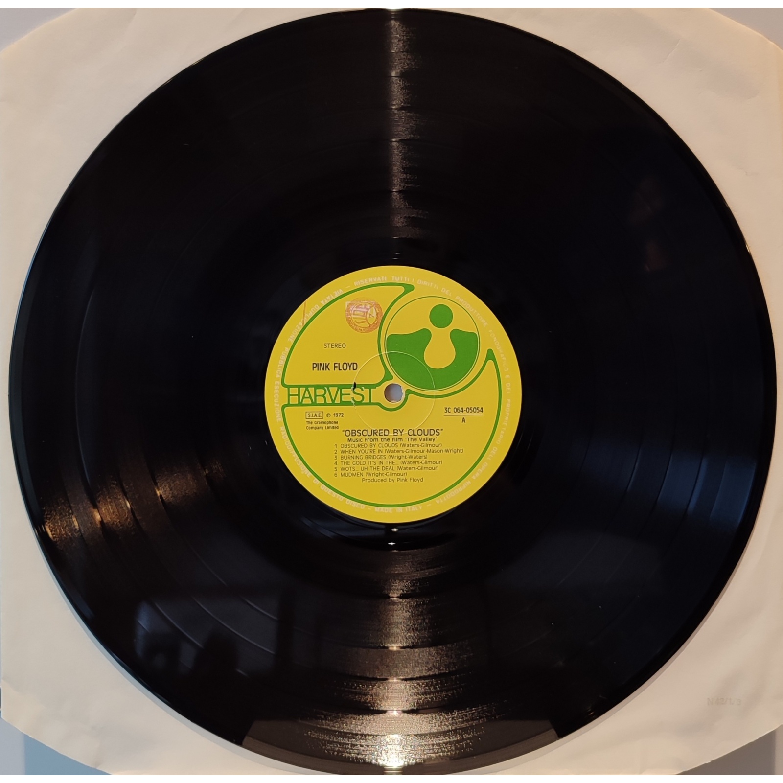 Ristampa italiana, in vinile di seconda mano, del settimo album in studio del gruppo rock progressive britannico Pink Floyd,"Obscured by Clouds".