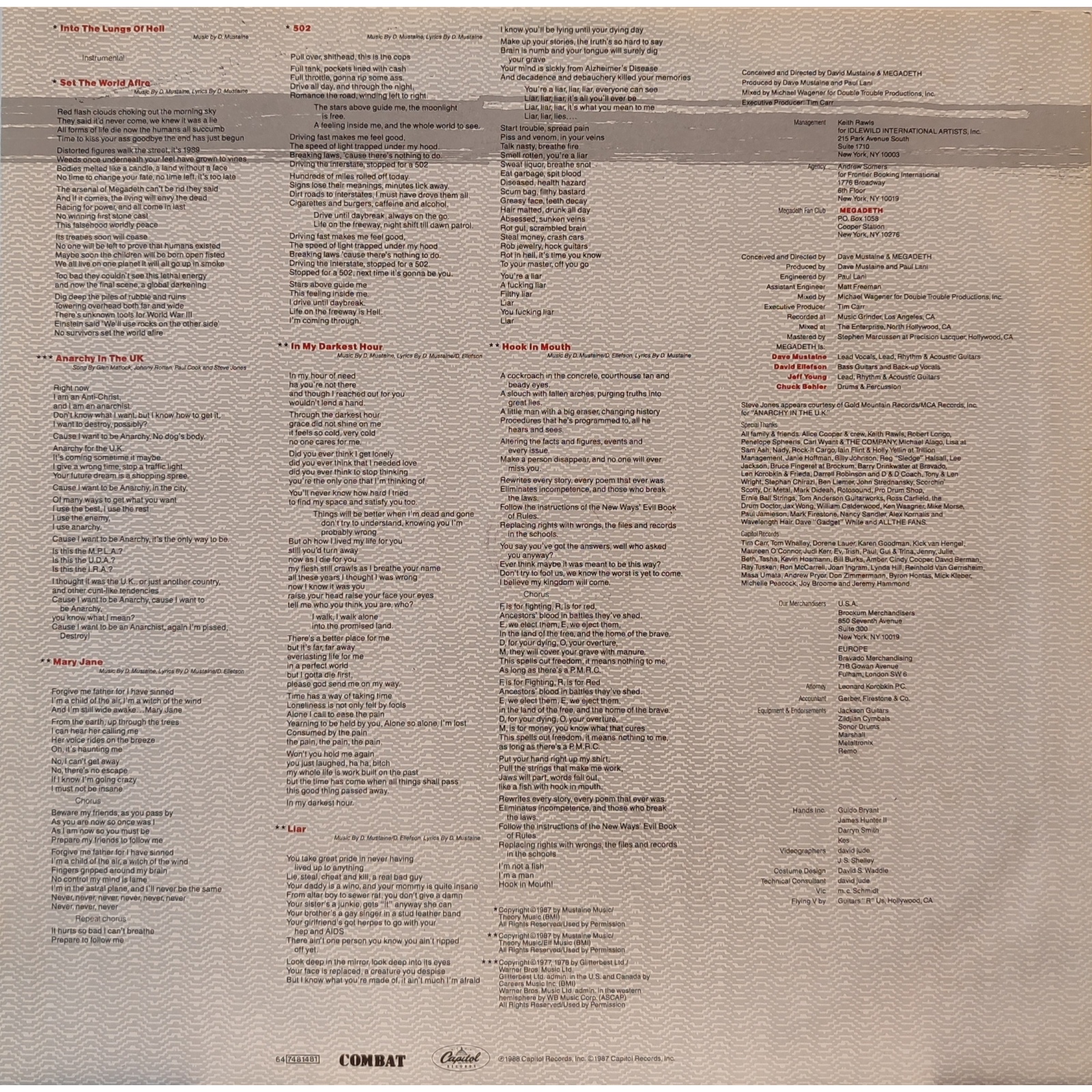 Tra i brani del disco figurano una cover dei Sex Pistols, "Anarchy in the U.K.", e il brano "In My Darkest Hour", scritto da Mustaine in seguito alla tragica scomparsa di Cliff Burton (al tempo l'unica persona con la quale Mustaine era rimasto in buoni rapporti dopo la sua uscita dai Metallica).