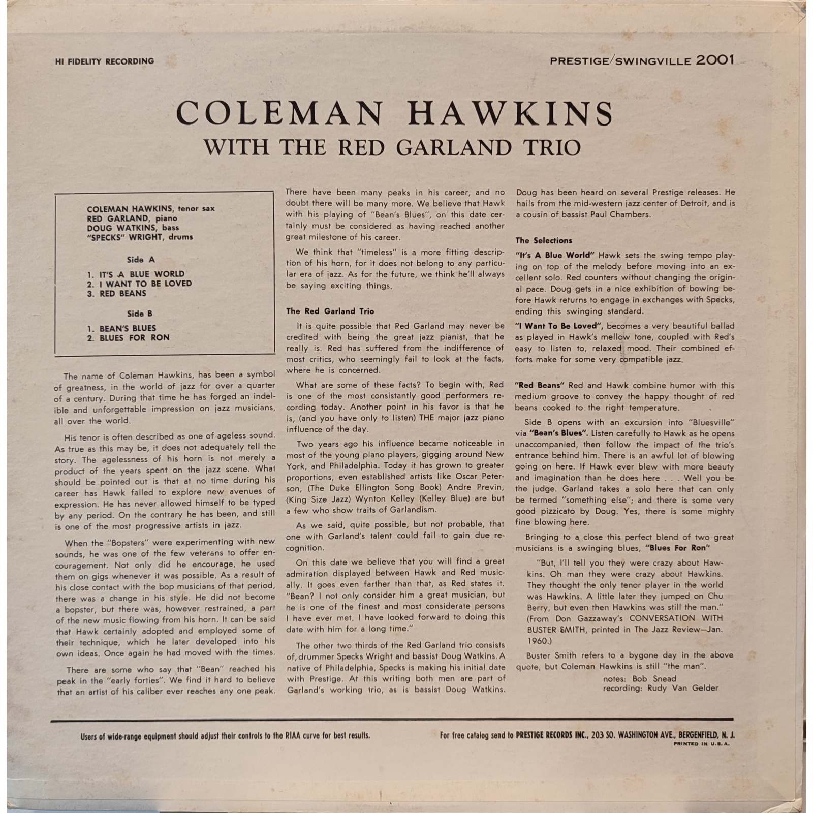 Ristampa americana, in vinile di seconda mano, dell'album "Coleman Hawkins with the Red Garland Trio" del sassofonista tenore statunitense Coleman Hawkins.