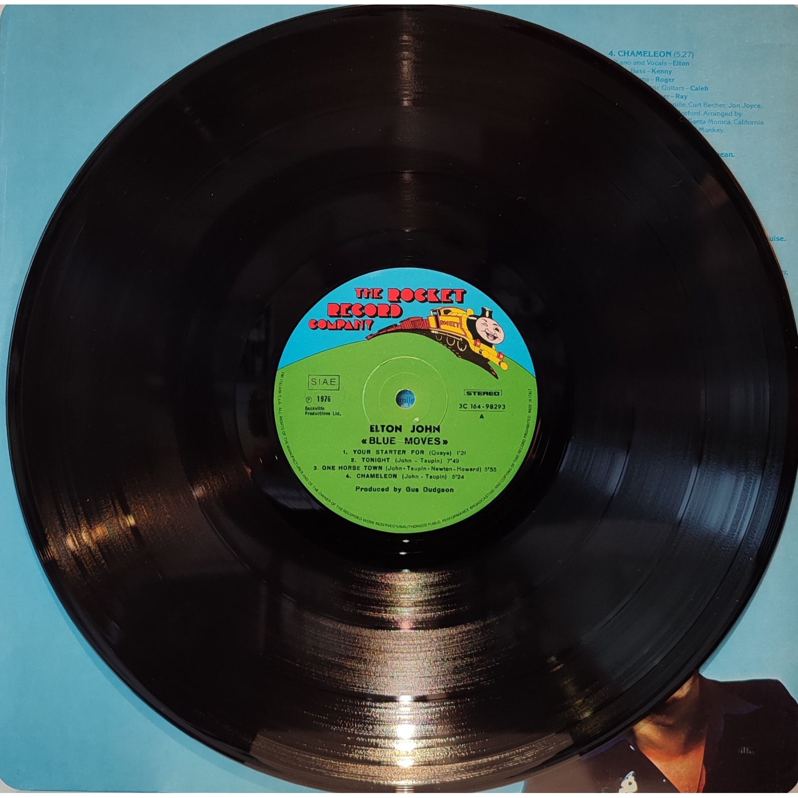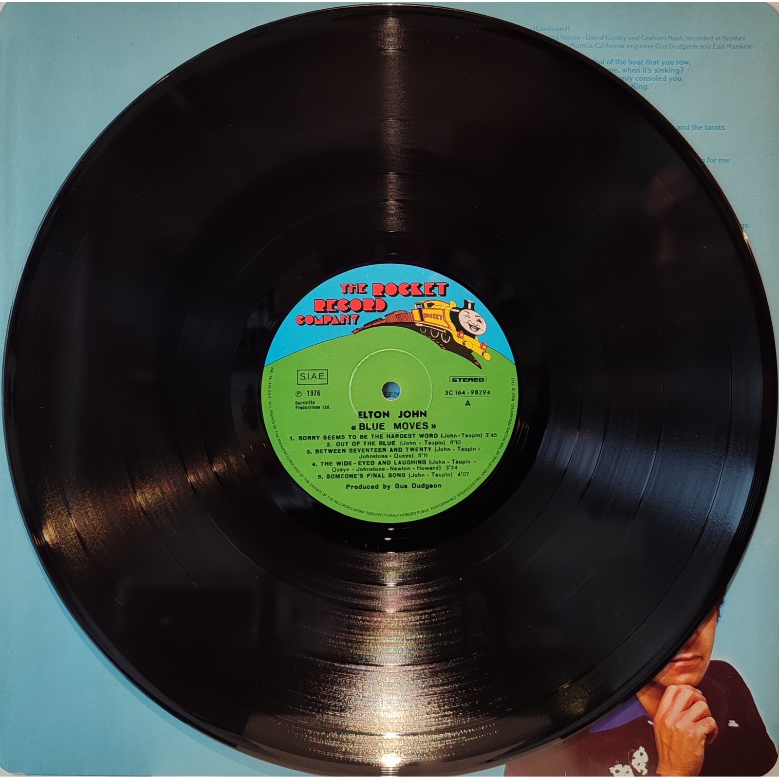 Prima edizione italiana, in vinile di seconda mano, del quindicesimo album in studio del cantautore e musicista inglese Elton John,"Blue Moves".
