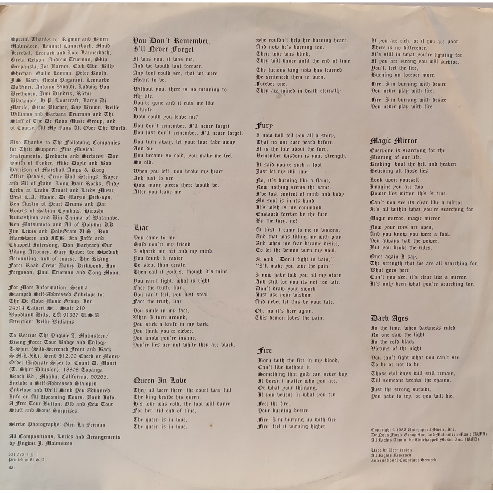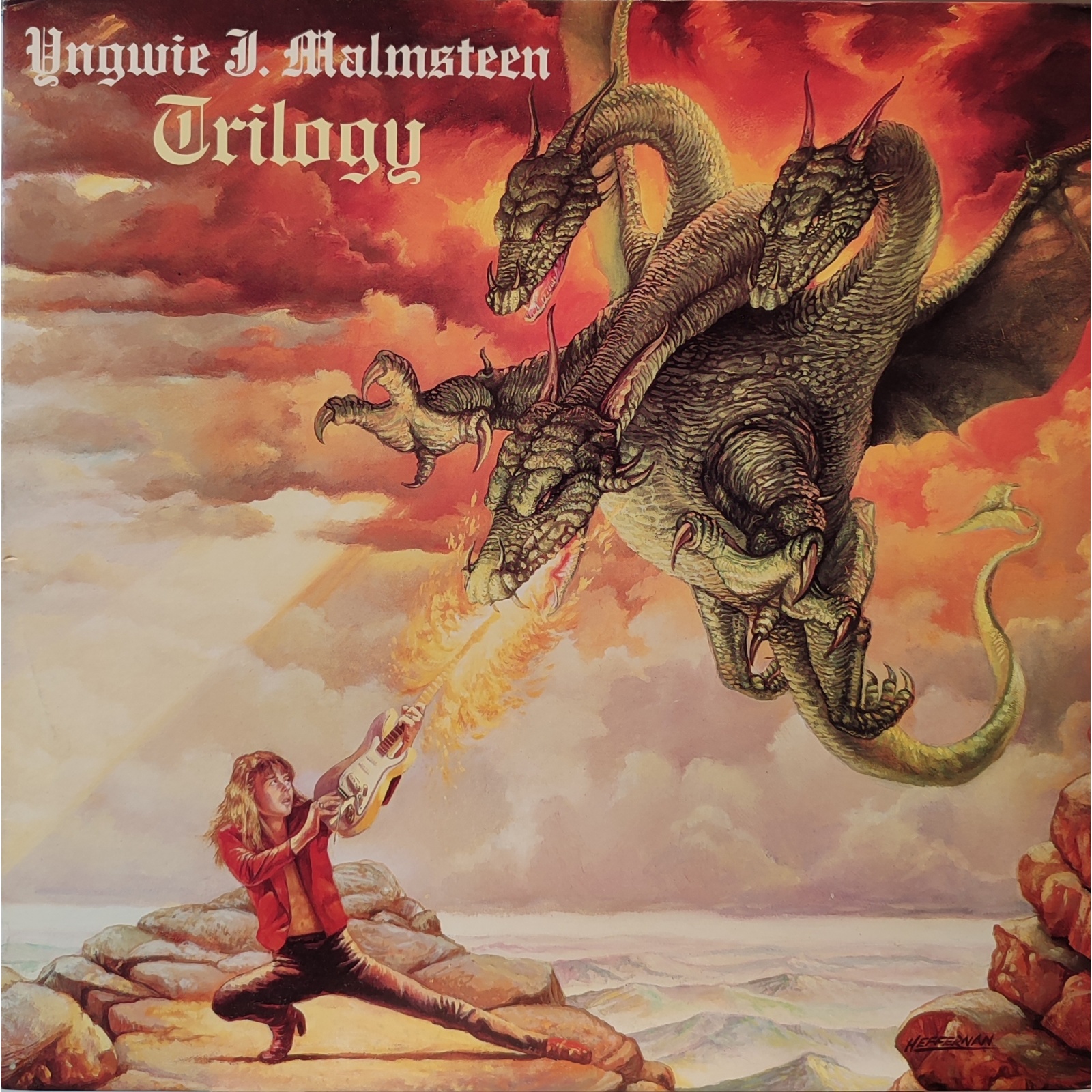 Perfetta prima edizione americana, in vinile di seconda mano, del terzo album in studio del chitarrista heavy metal svedese Yngwie Malmsteen,"Trilogy".