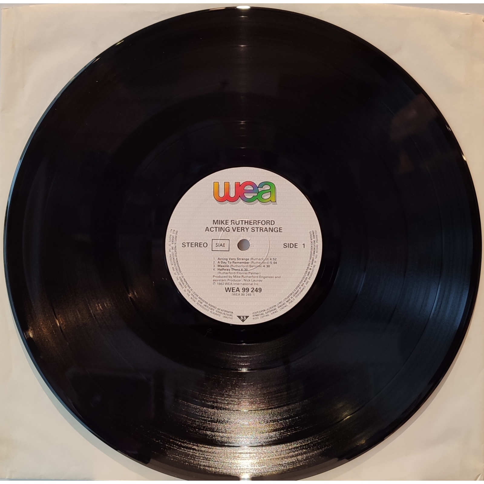 Prima edizione tedesca, in vinile di seconda mano, del secondo album solista del bassista e chitarrista dei Genesis Mike Rutherford,"Acting very strange".