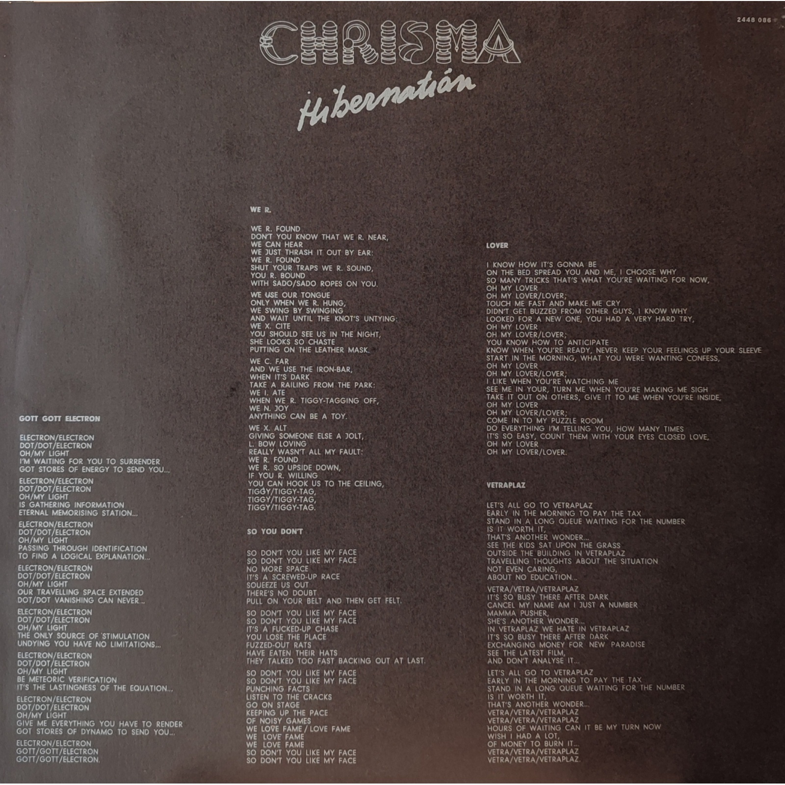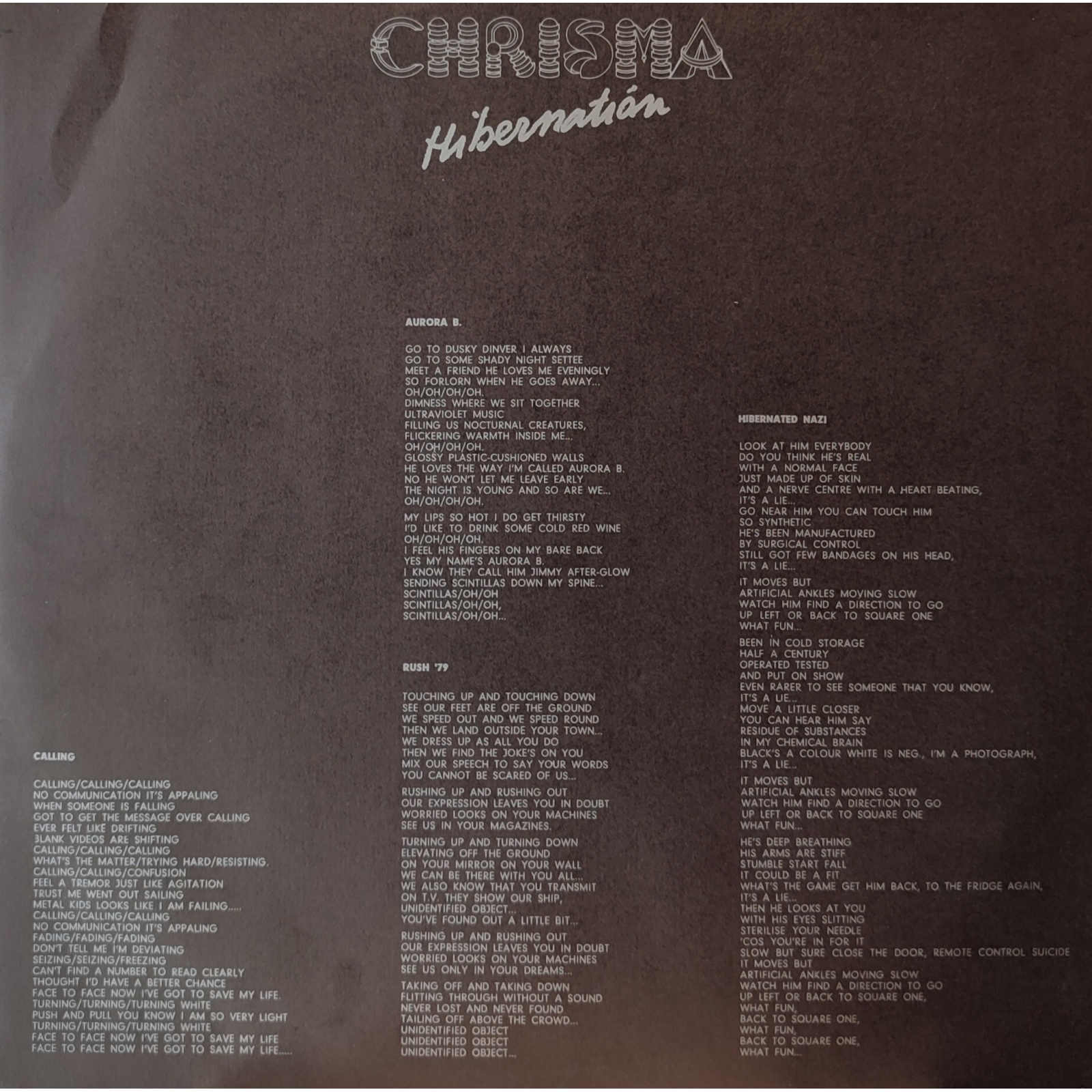 Prima edizione italiana, in vinile di seconda mano, del secondo album in studio del gruppo new wave e post punk italiano Chrisma, "Hibernation".