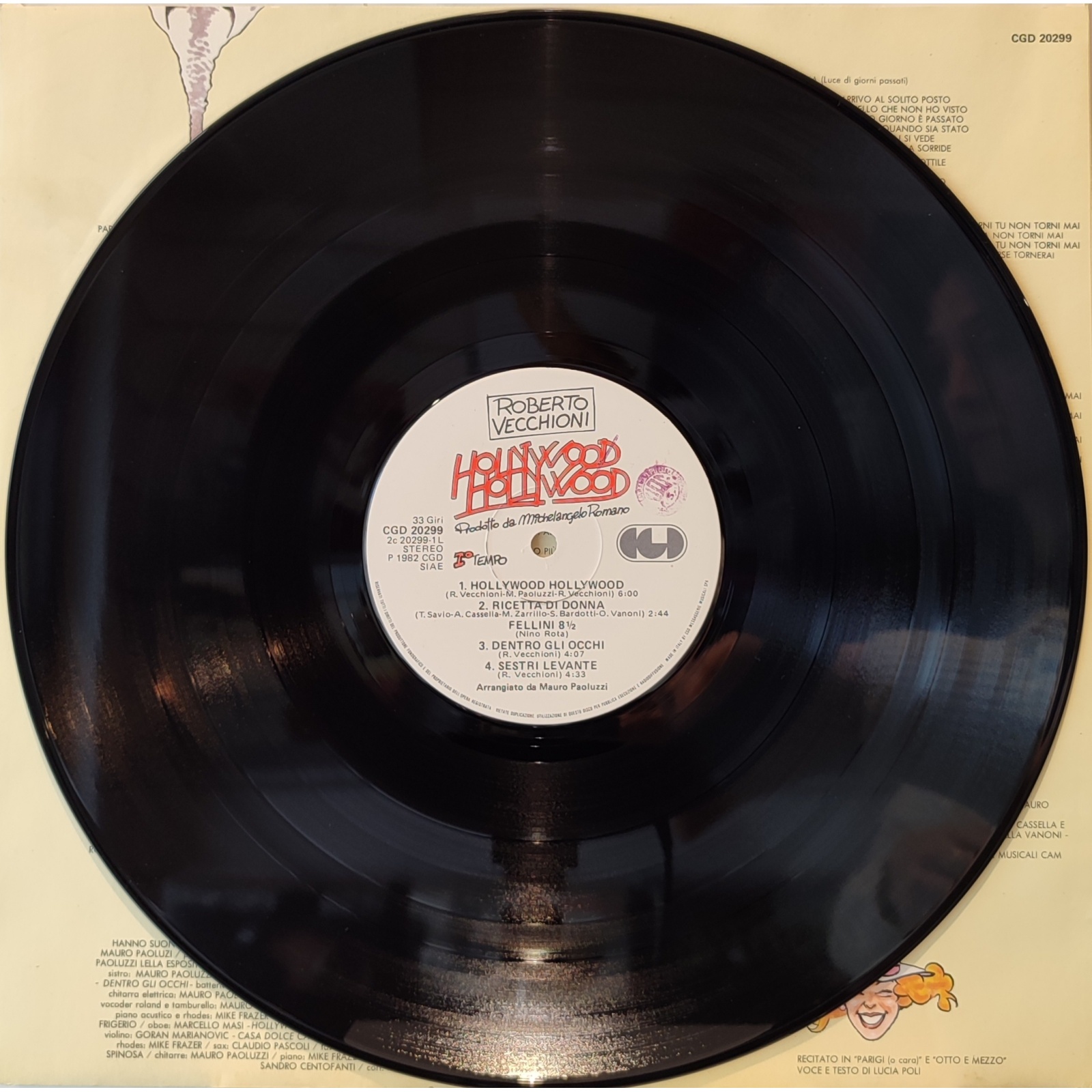 Prima edizione italiana, in vinile di seconda mano, dell'album Hollywood Hollywood " del cantautore italiano Roberto Vecchioni.