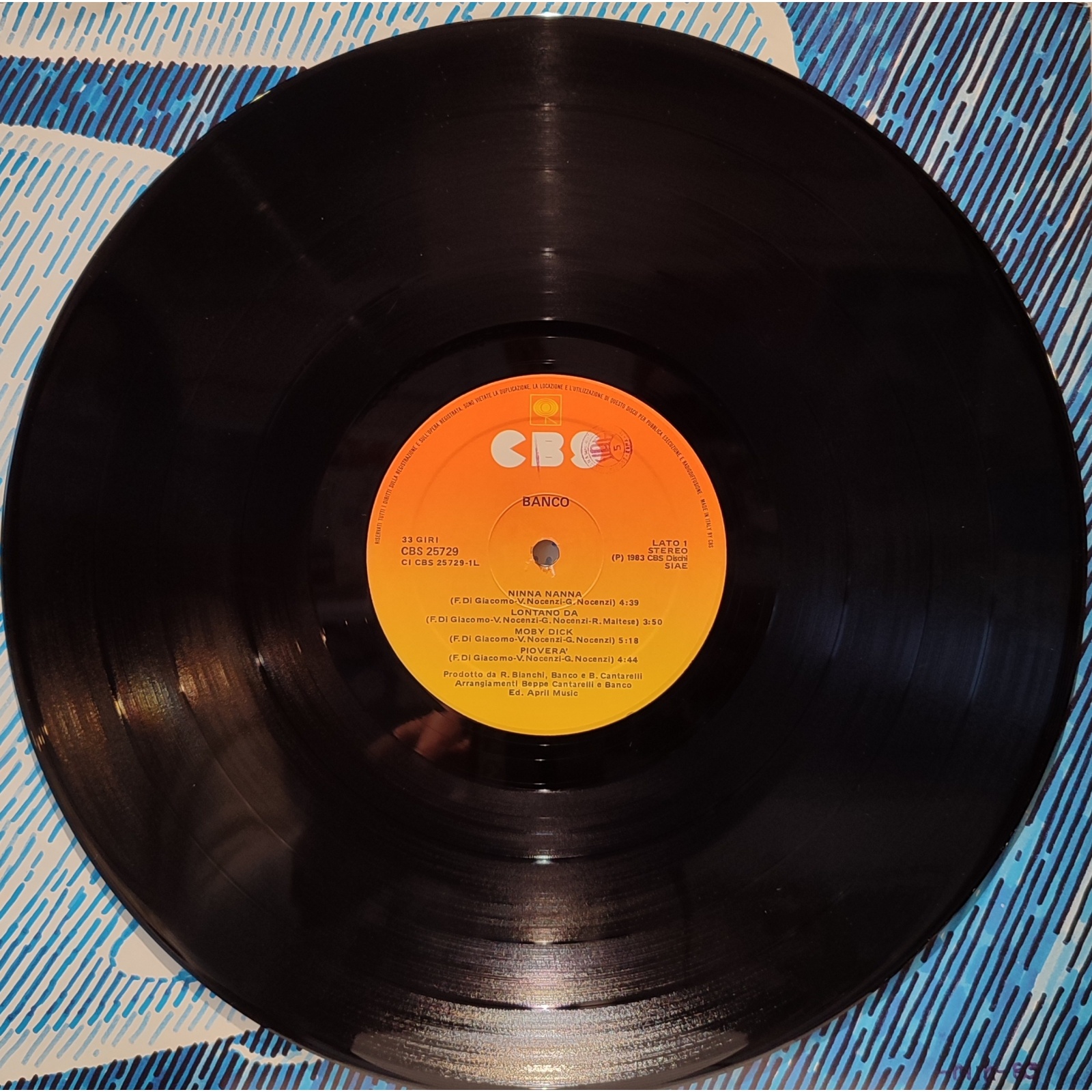 Prima edizione italiana, in vinile di seconda mano, dell'undicesimo album del gruppo rock progressive italiano Banco del Muto Soccorso,"Banco".