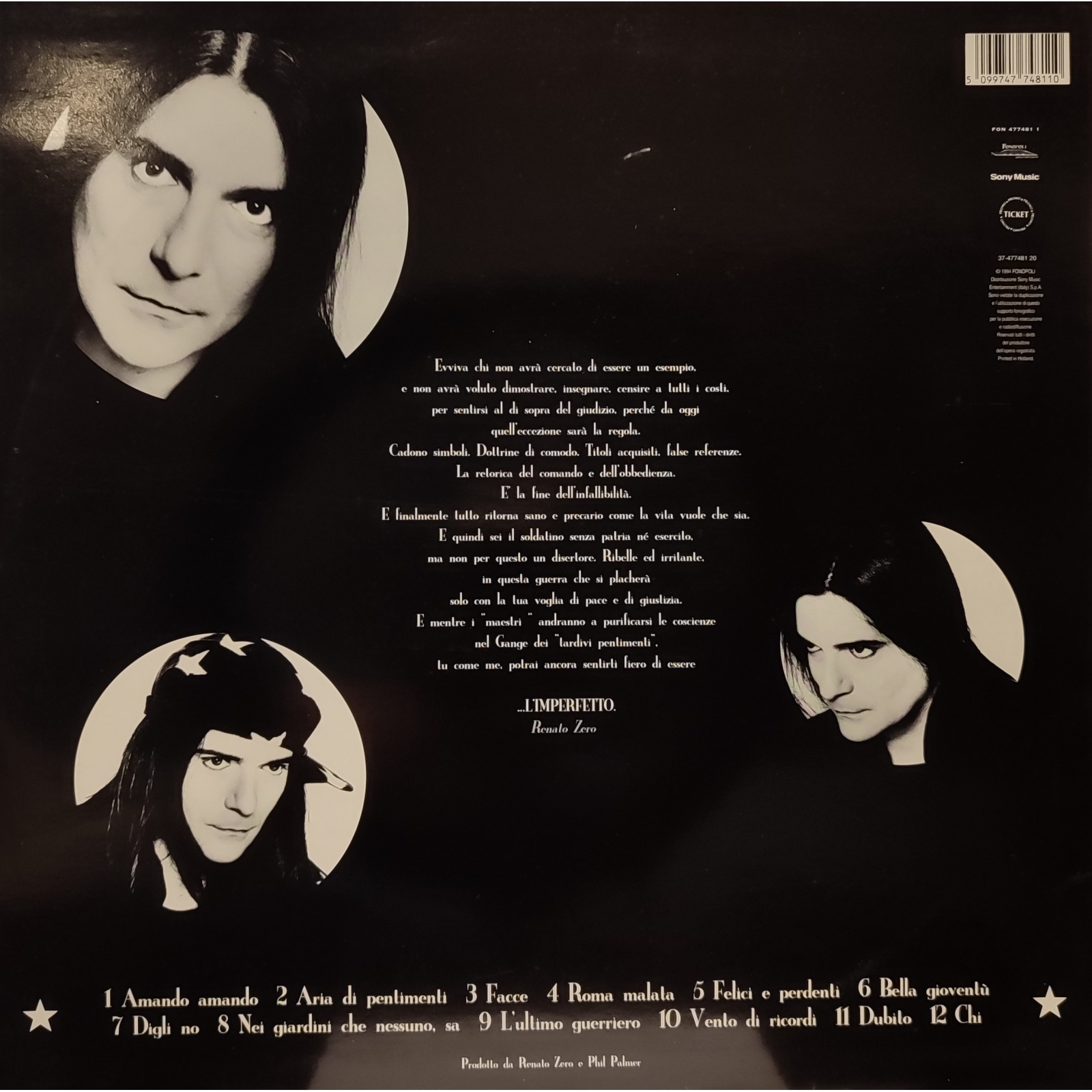 Rara prima edizione olandese, in vinile di seconda mano, del diciannovesimo album in studio di Renato Zero,"L' imperfetto".