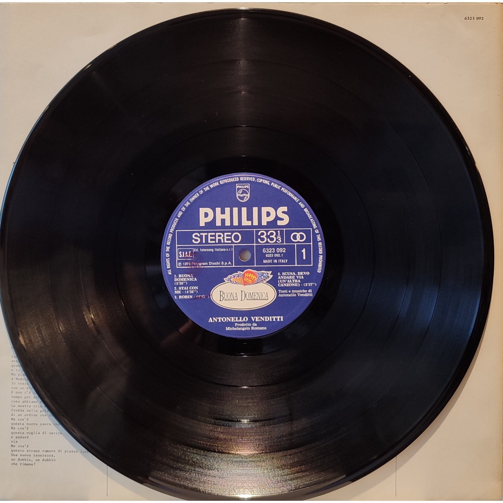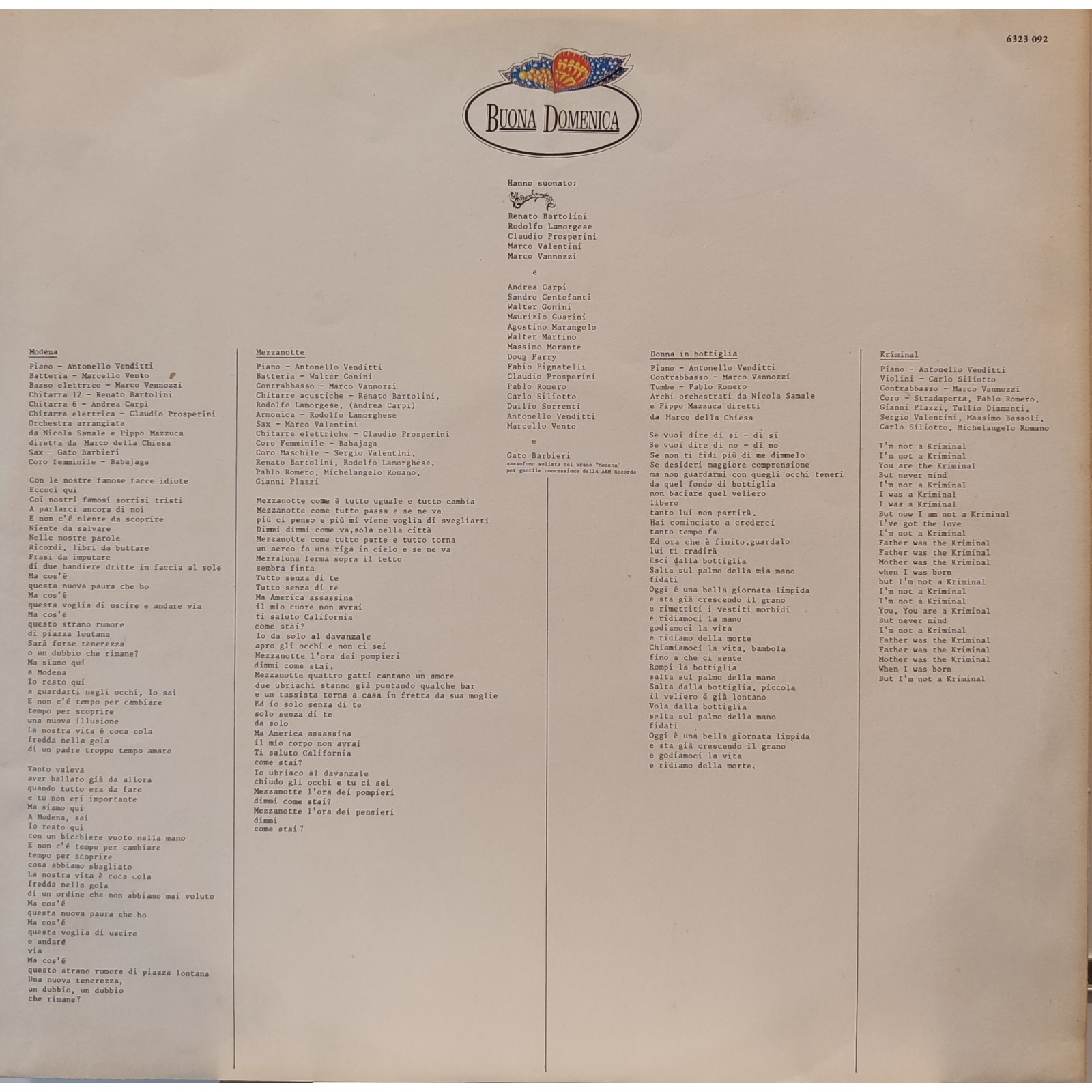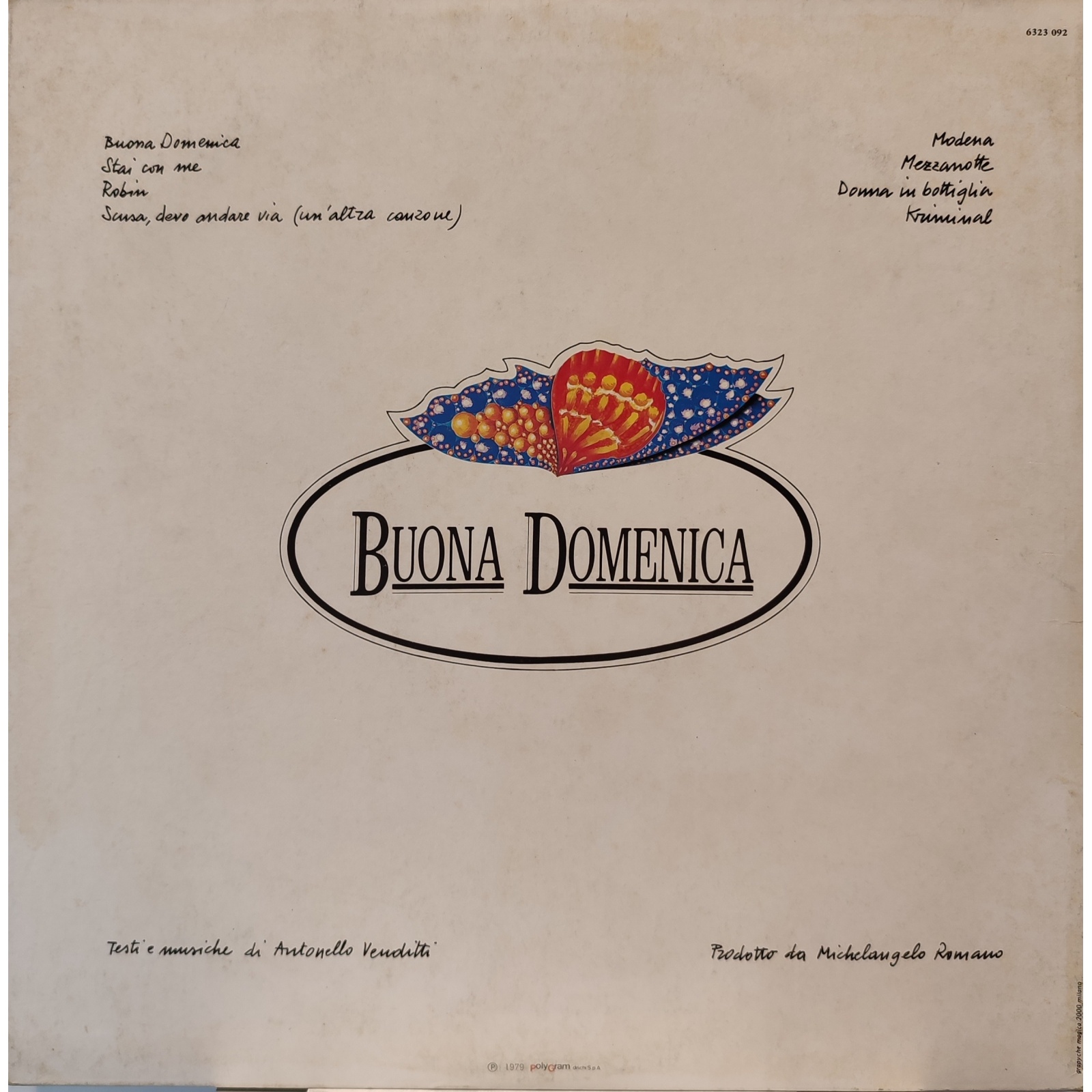 Prima edizione italiana, in vinile di seconda mano, del settimo album in studio di Antonello Venditti,"Buona domenica".
