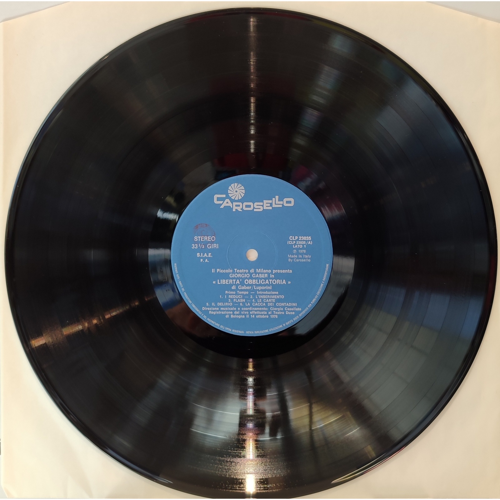 Prima edizione italiana, in vinile di seconda mano, dell'album live "Libertà obbligatoria" del cantautore italiano Giorgio Gaber.
