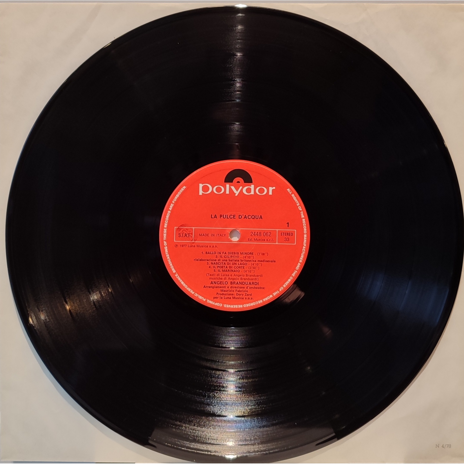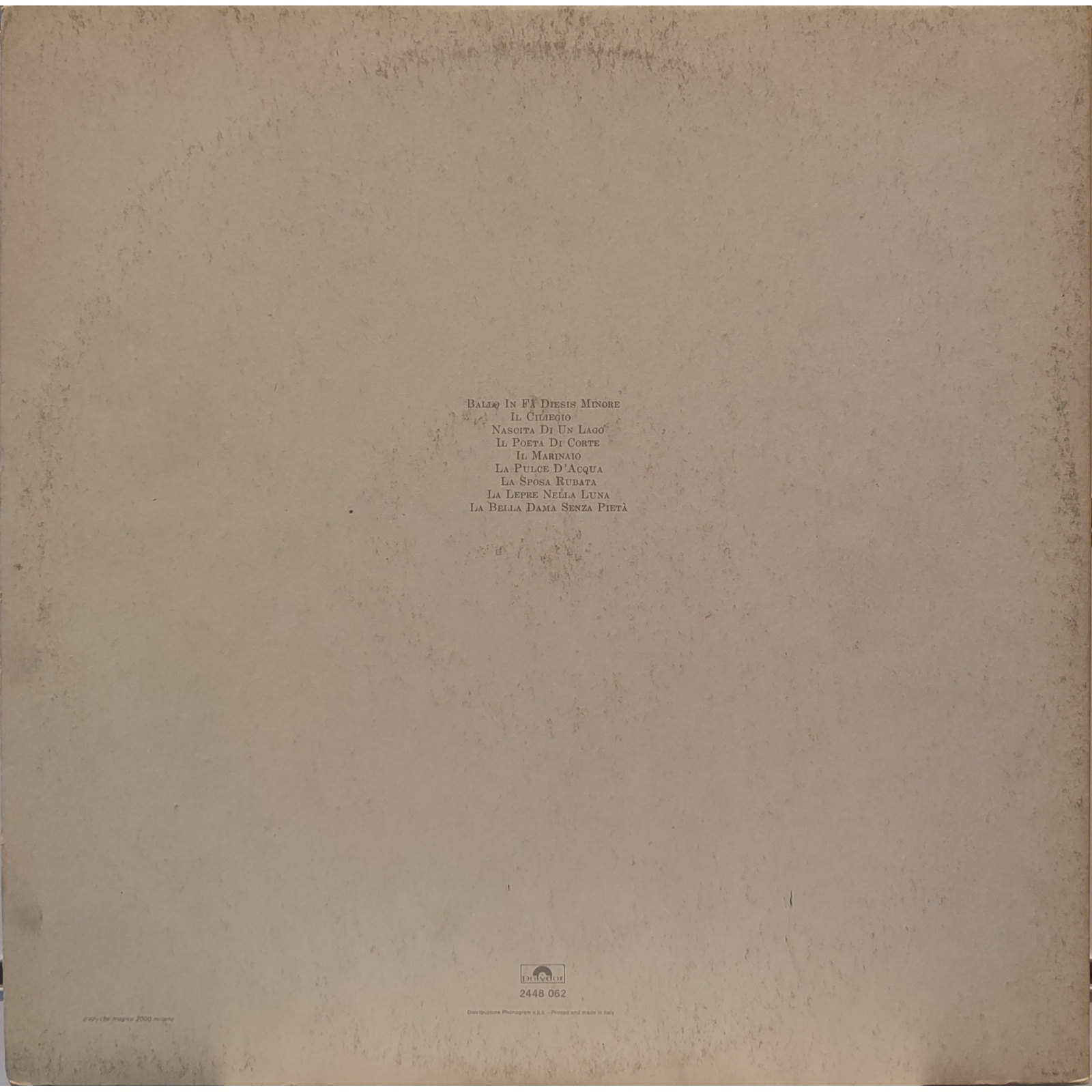 Prima edizione italiana, in vinile di seconda mano, del quarto album in studio del cantautore italiano Angelo Branduardi,"La pulce d'acqua".