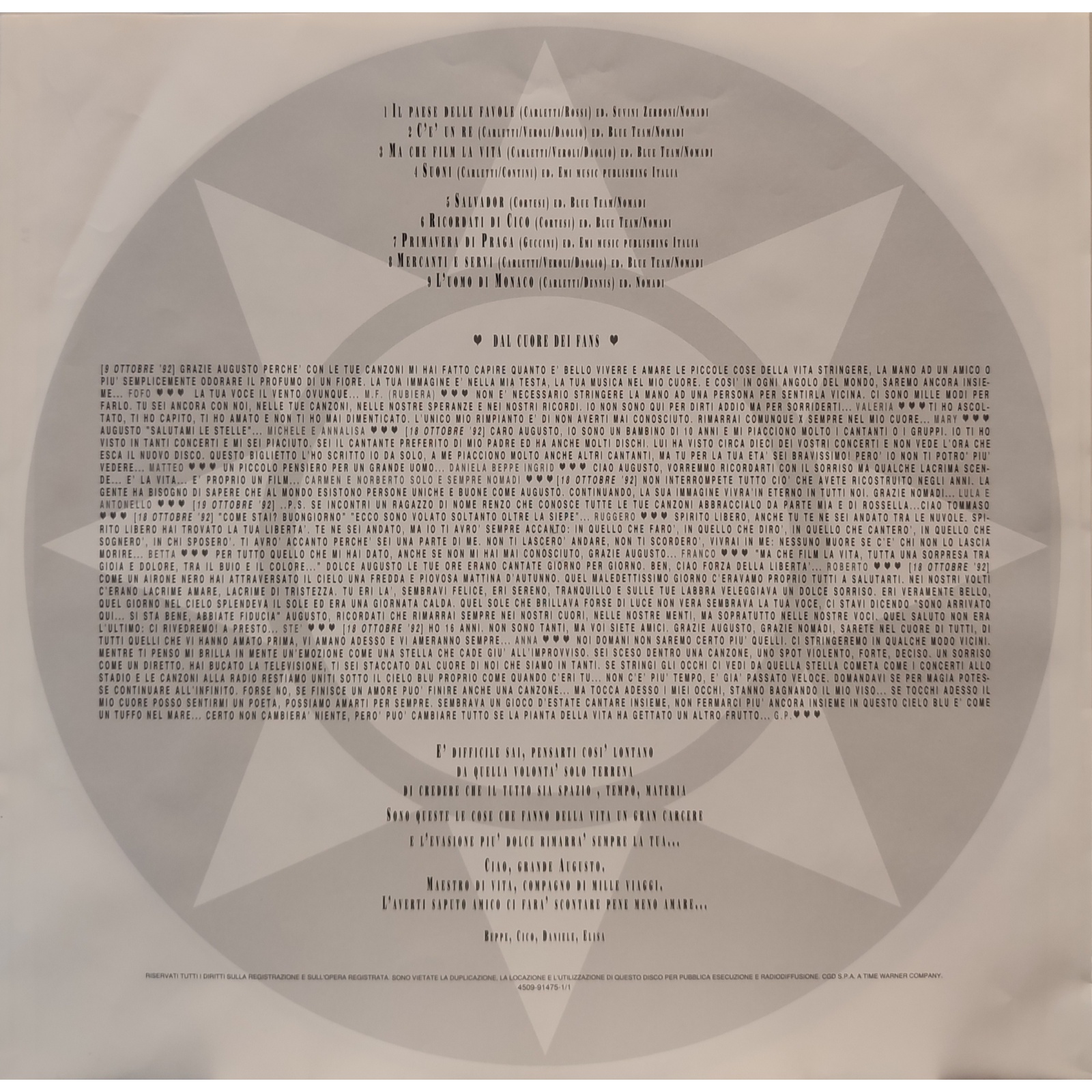 Il disco è considerato commovente da tutti i fan dei Nomadi, perché, nonostante il peggioramento delle sue condizioni di salute, Augusto Daolio continuava a tenere concerti con l'entusiasmo di sempre.