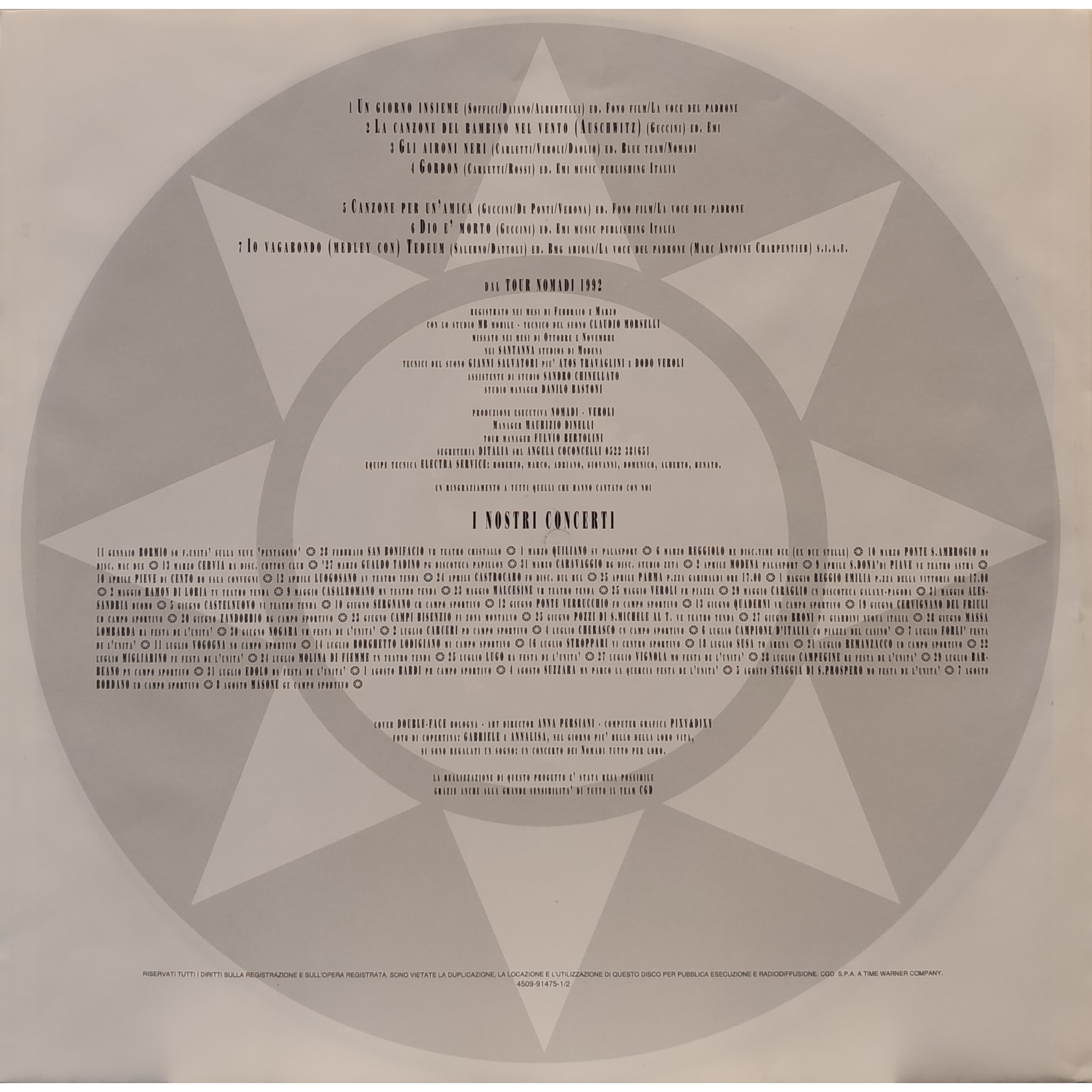 Datato 1992, etichetta CGD, doppio LP comprensivo di inner sleeve originali.
