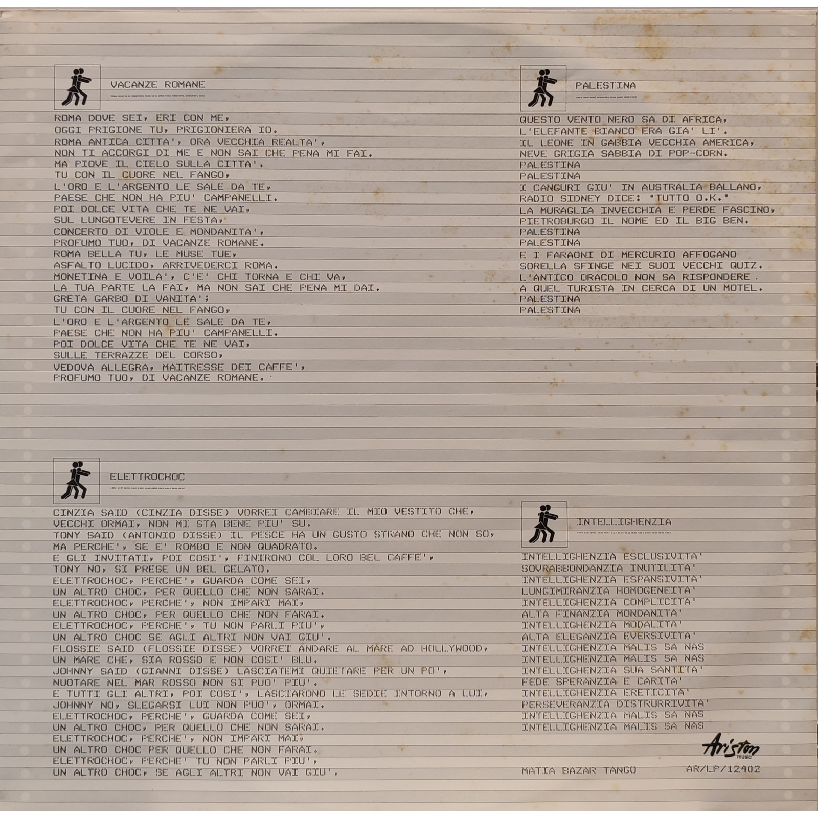 Datato 1983, etichetta Ariston, comprensivo di inner sleeve originale con testi.