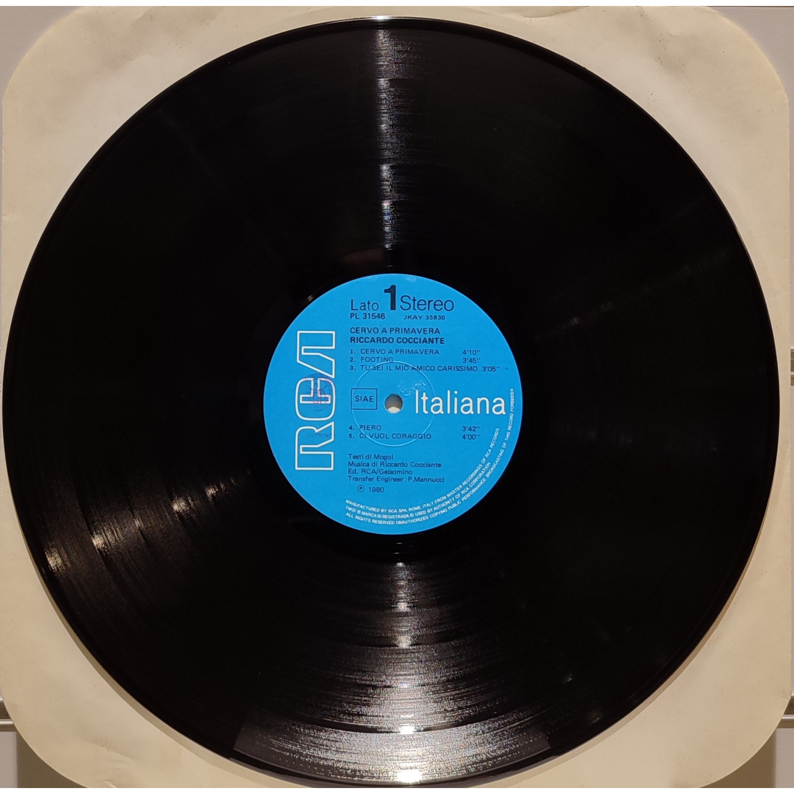 Prima edizione italiana, in vinile di seconda mano, dell'album "Cervo a primavera" di Riccardo Cocciante.