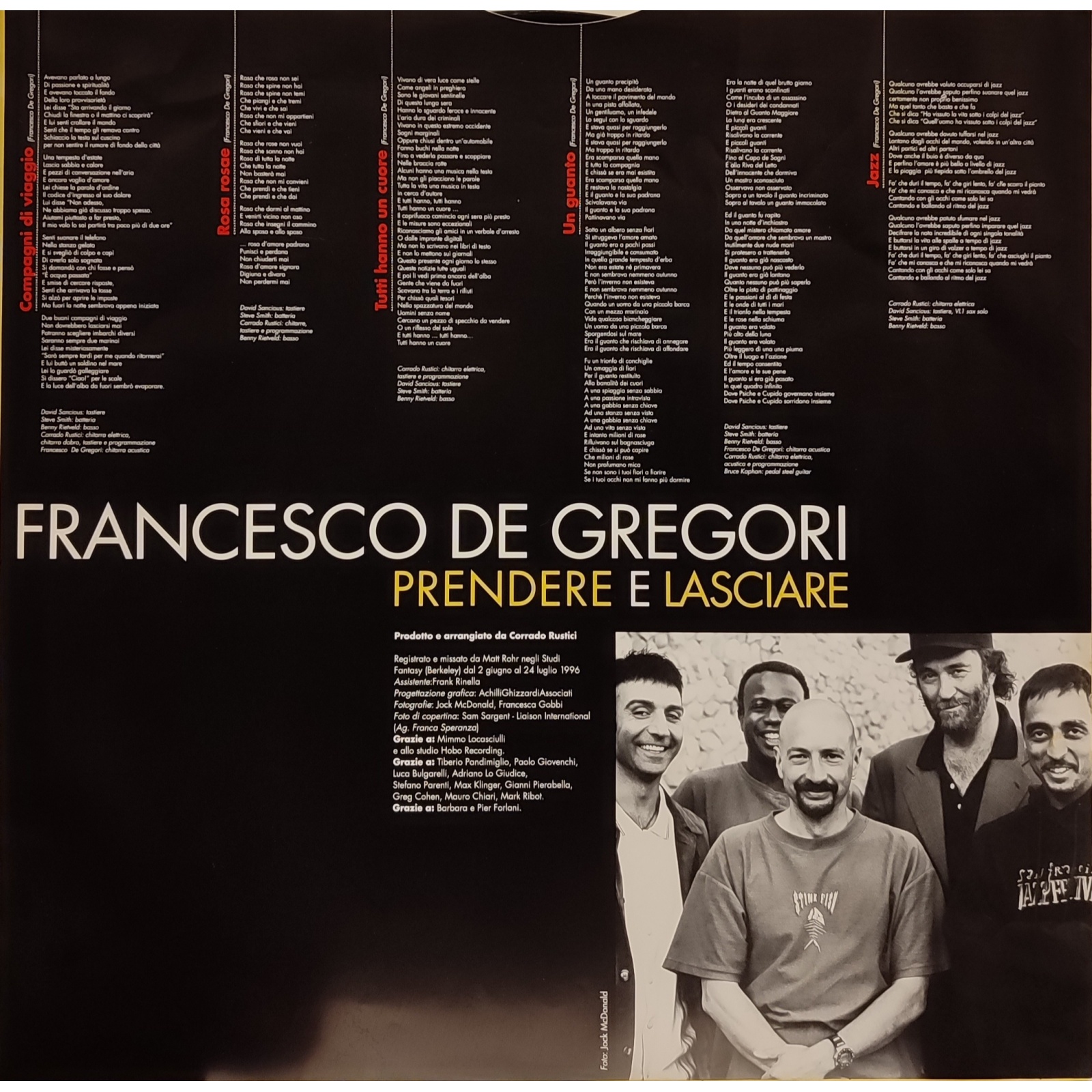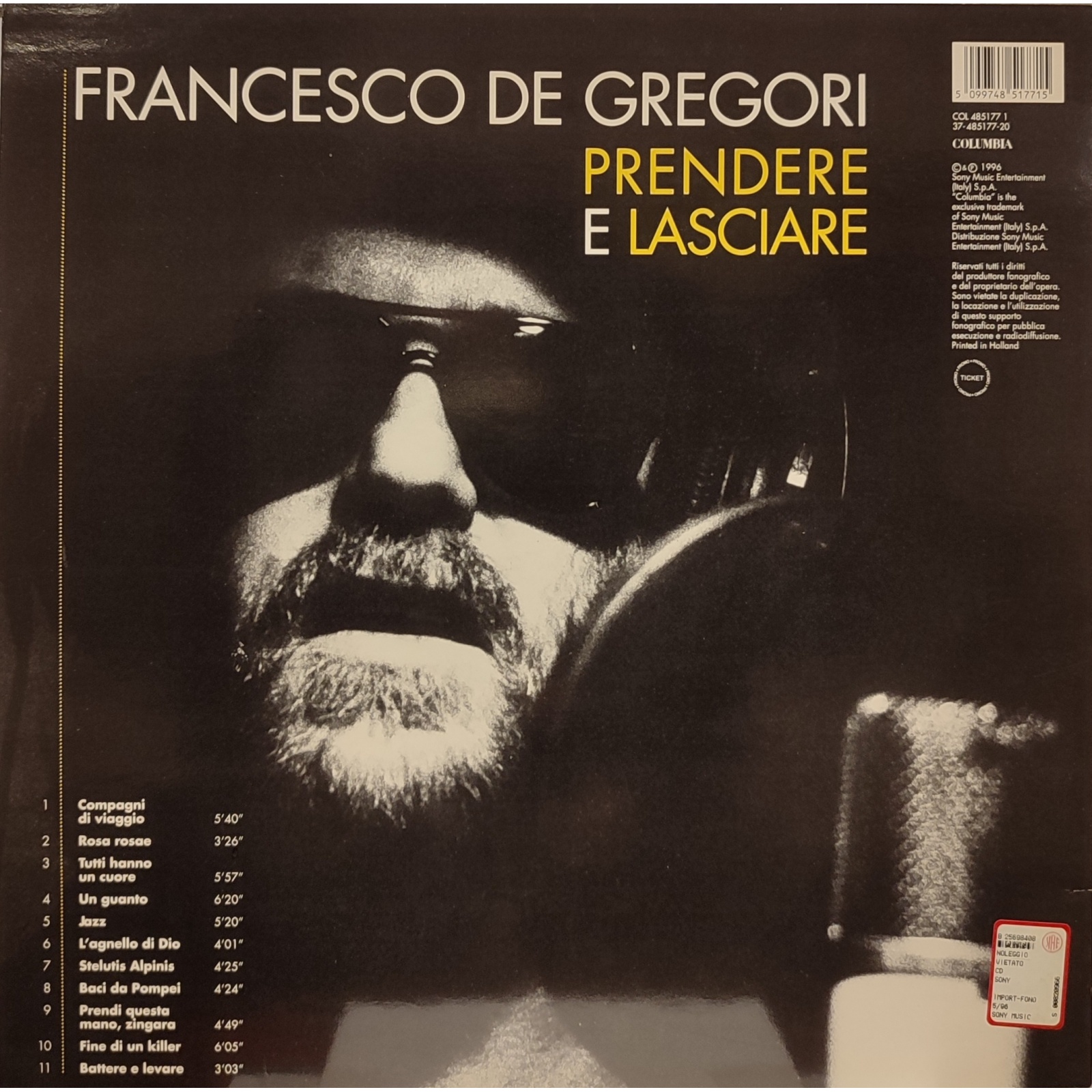 Perfetta prima edizione italiana, in vinile di seconda mano, dell'album "Prendere e lasciare" del cantautore italiano Francesco De Gregori.