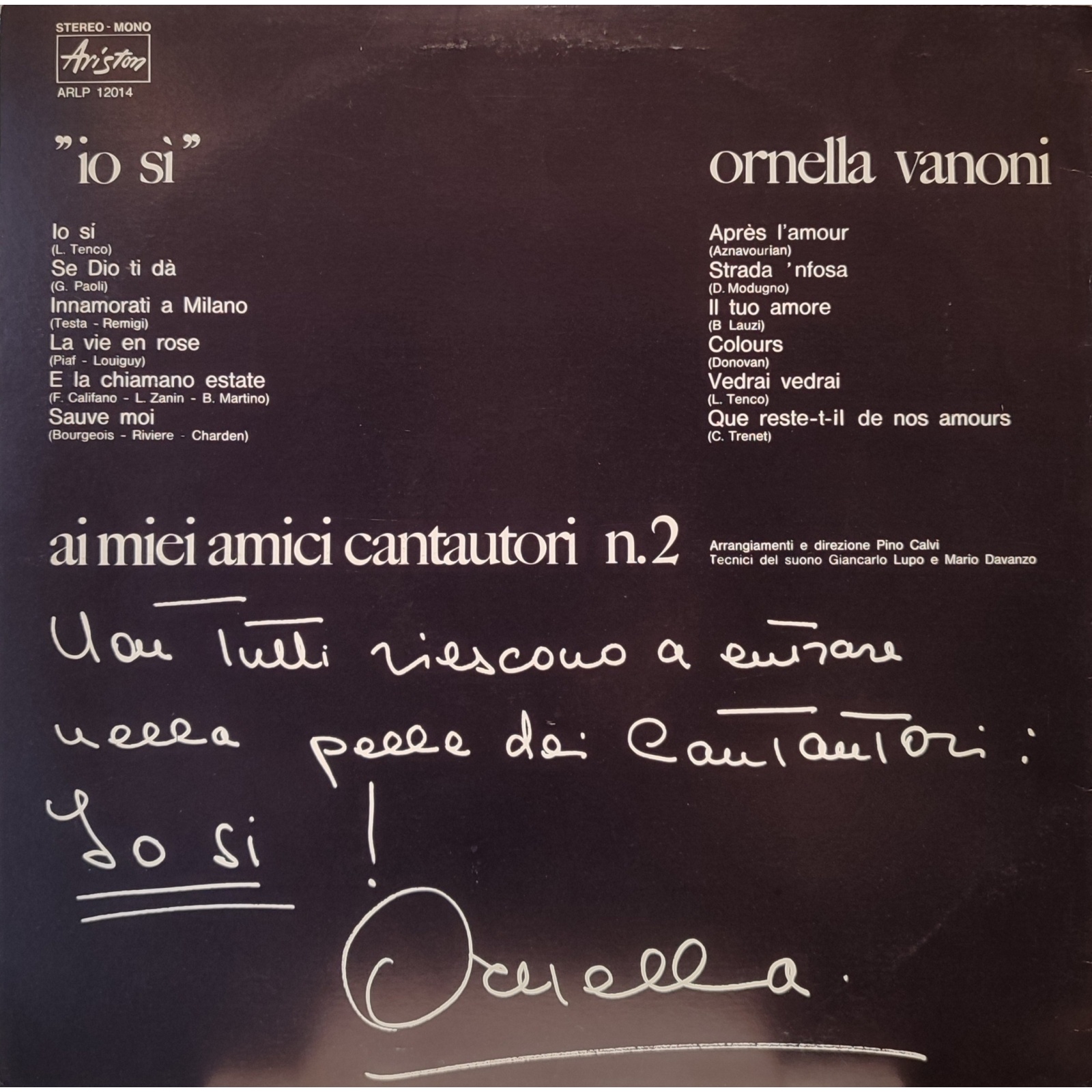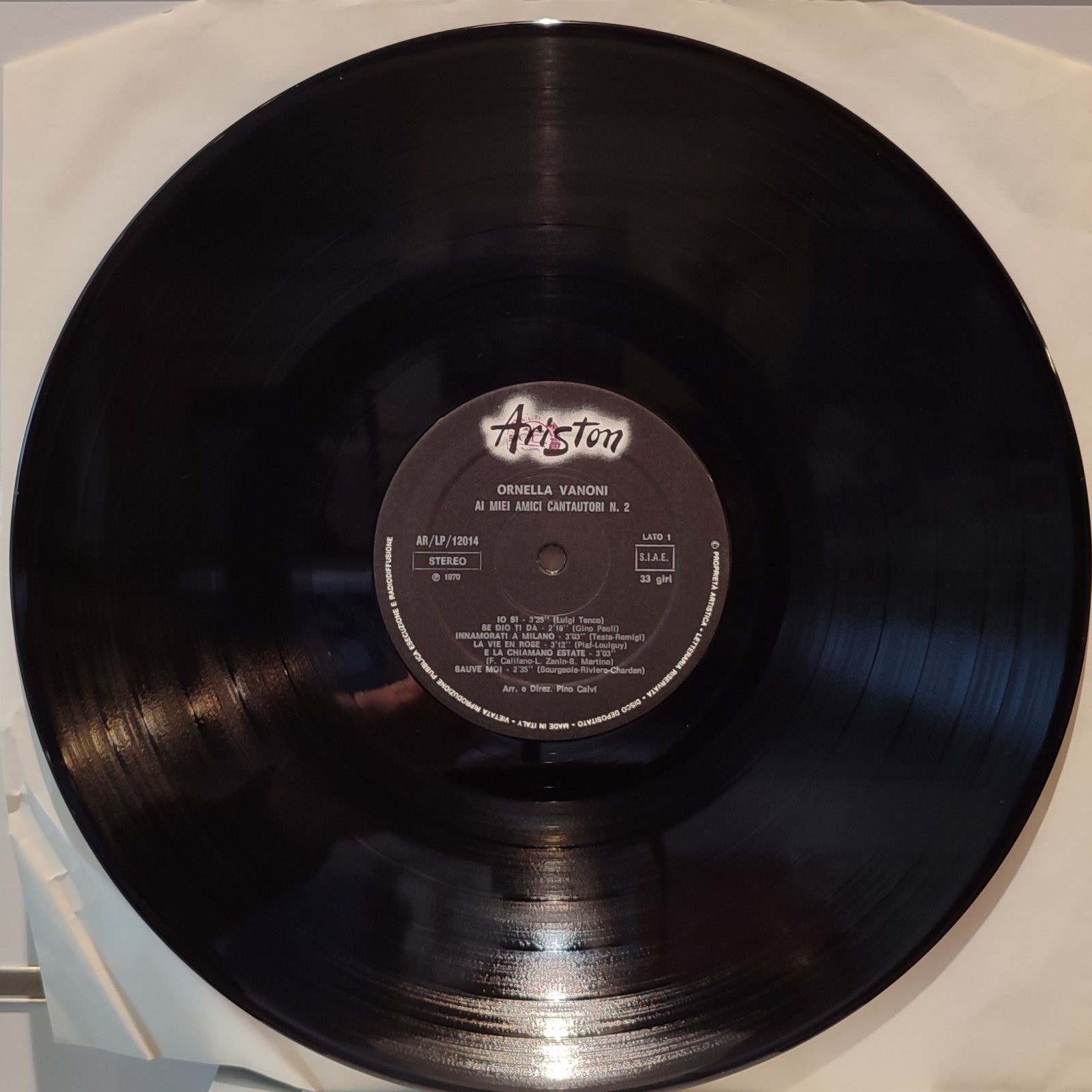 Prima edizione italiana, in vinile di seconda mano, dell'album "Ai miei amici cantautori n.2" della cantante italiana Ornella Vanoni.