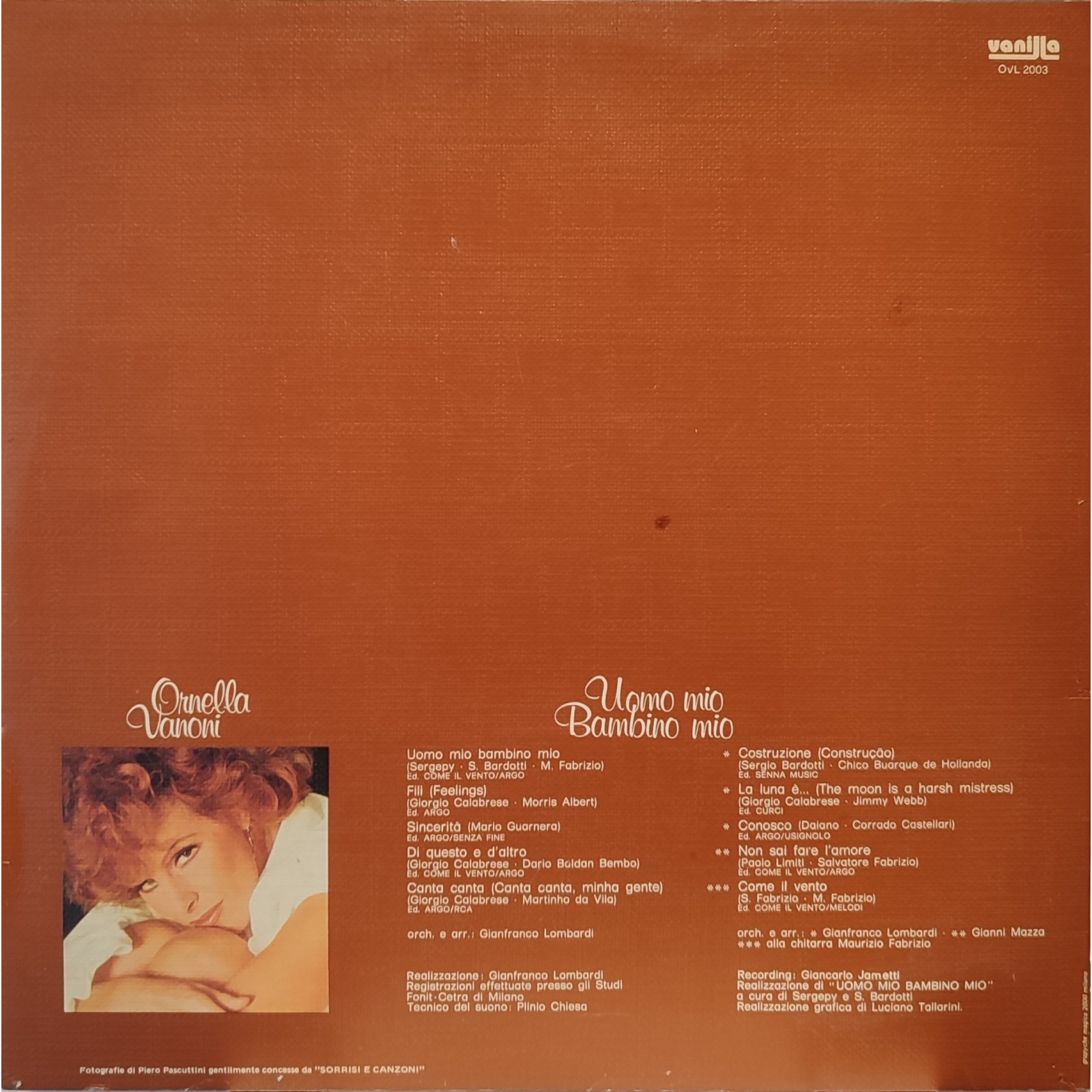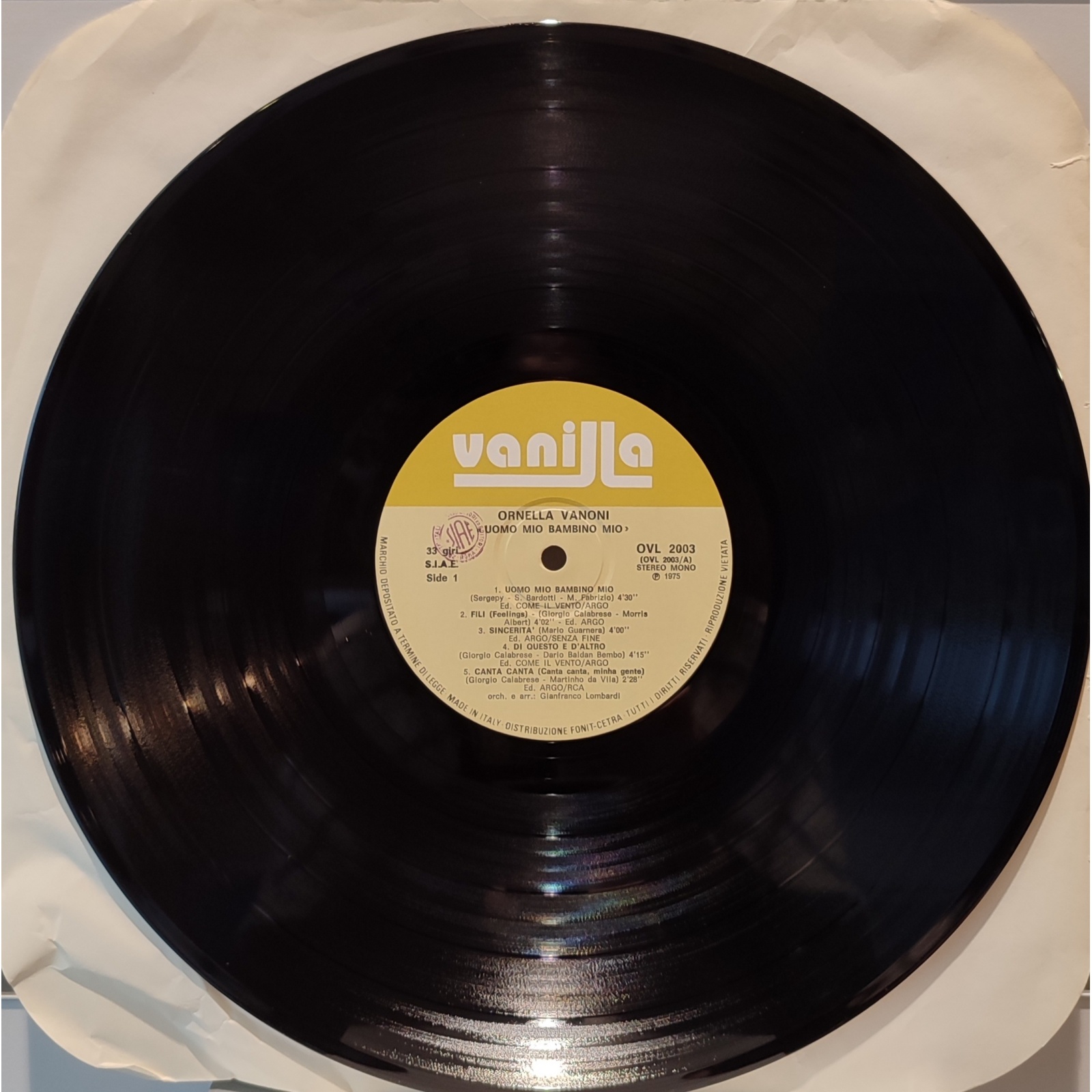 Prima edizione italiana, in vinile di seconda mano, dell'album "Uomo mio bambino mio" della cantante italiana Ornella Vanoni.