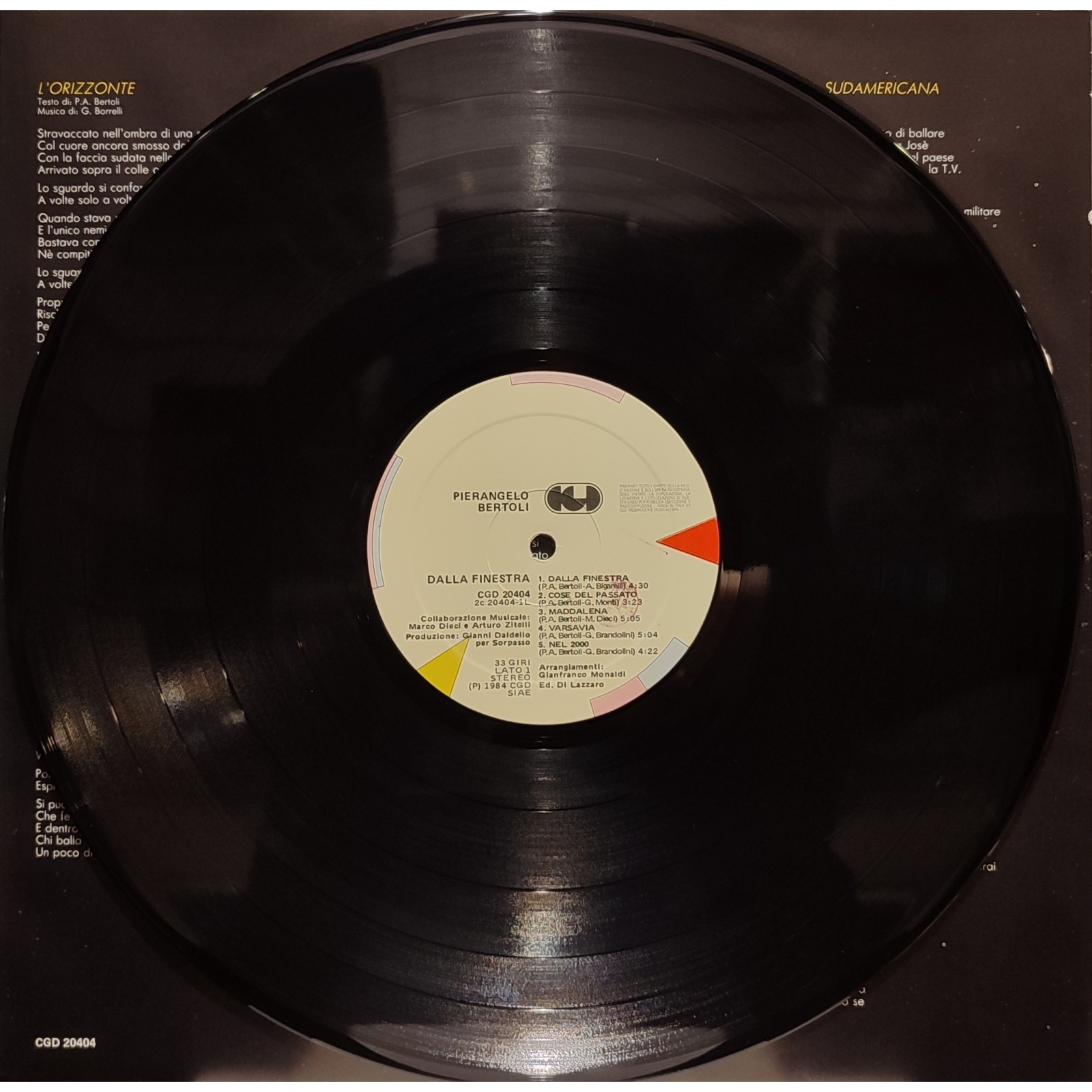 Prima edizione italiana, in vinile di seconda mano, del decimo album in studio del cantautore italiano Pierangelo Bertoli,"Dalla finestra".