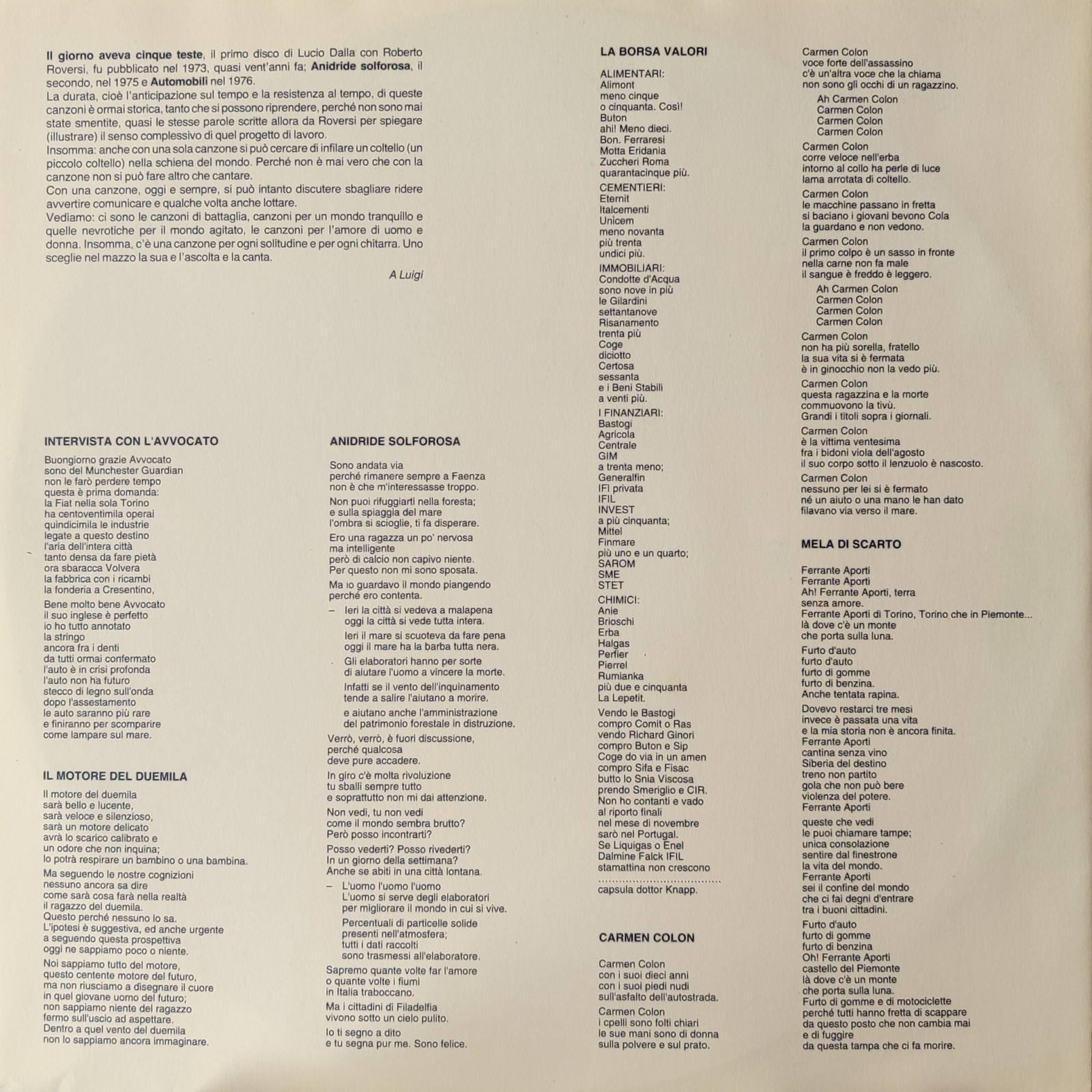 Il disco contiene altre 11 tracce, tutte scritte dalla coppia Dalla/Roversi nel periodo tra il 1972 e 1976 e presenti negli album "Il giorno aveva cinque teste", del 1973, "Anidride solforosa", del 1975 e "Automobili", del 1976.