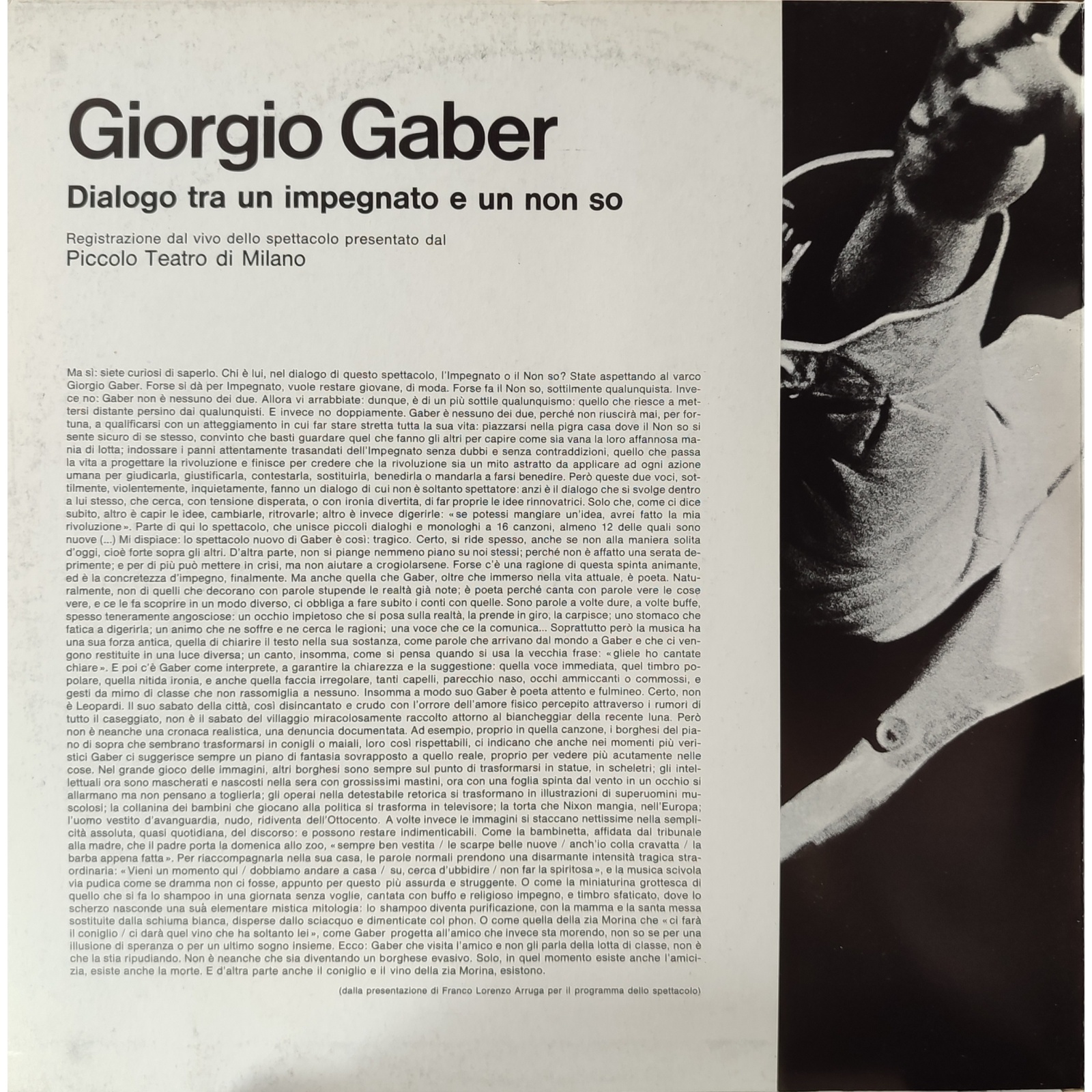 Raccoglie le canzoni dell'omonimo spettacolo scritto da Gaber e Sandro Luporini, registrato al Politeama Genovese di Genova nei giorni 6-7-8 novembre 1972.
