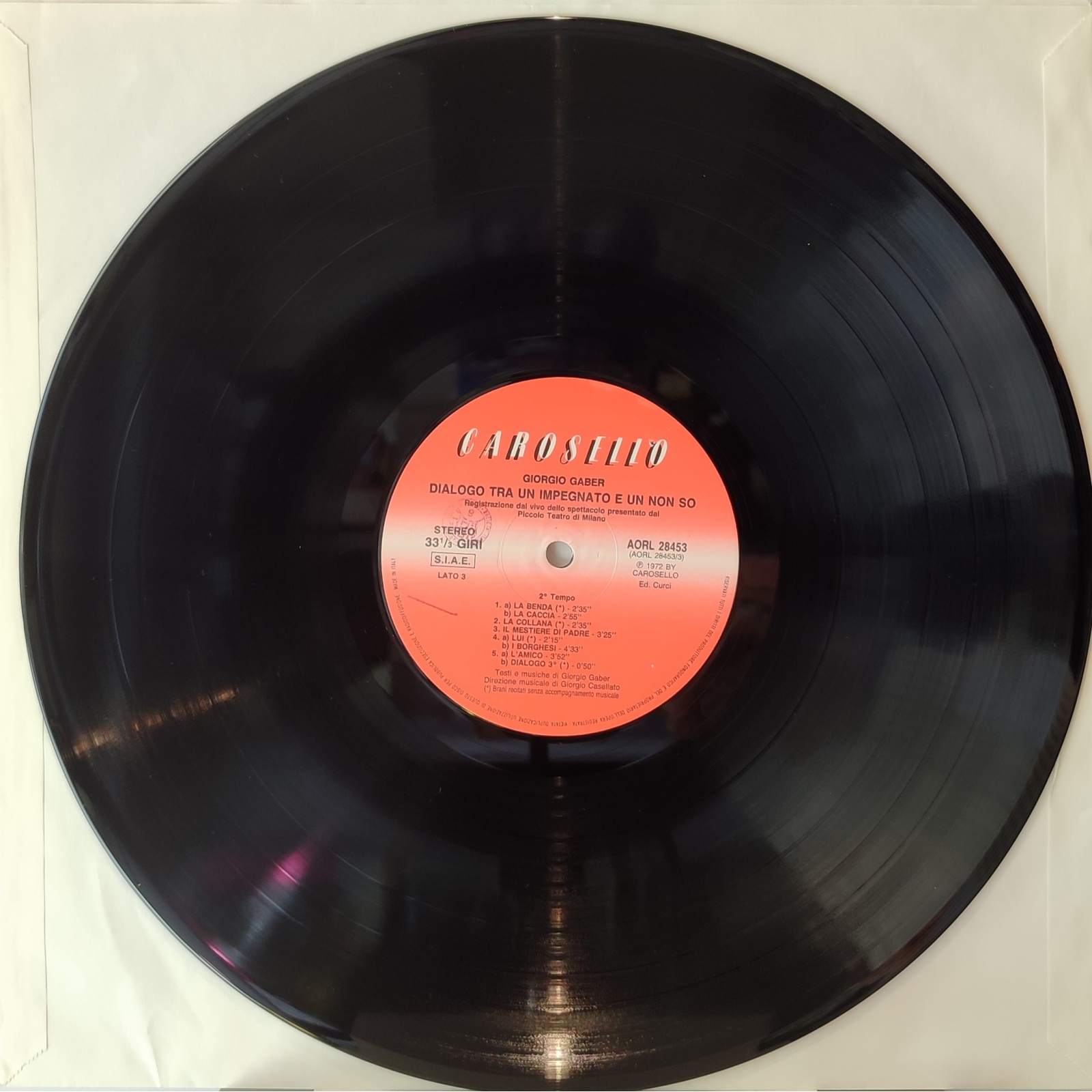 Ristampa italiana, in vinile di seconda mano, dell'album "Dialogo tra un impiegato e un non so" di Giorgio Gaber.