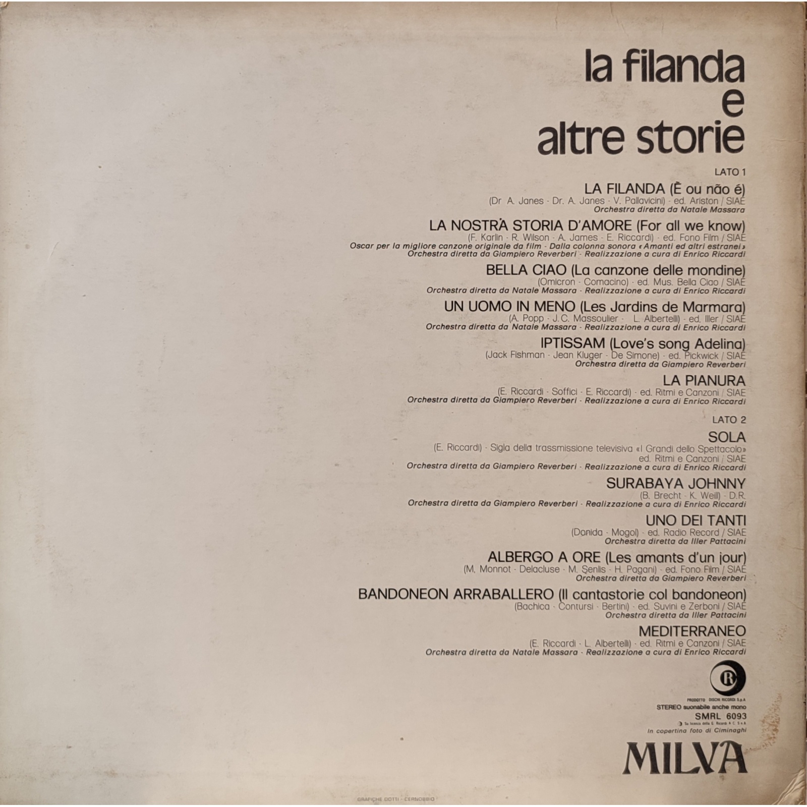 Datato 1972, etichetta Ricordi.