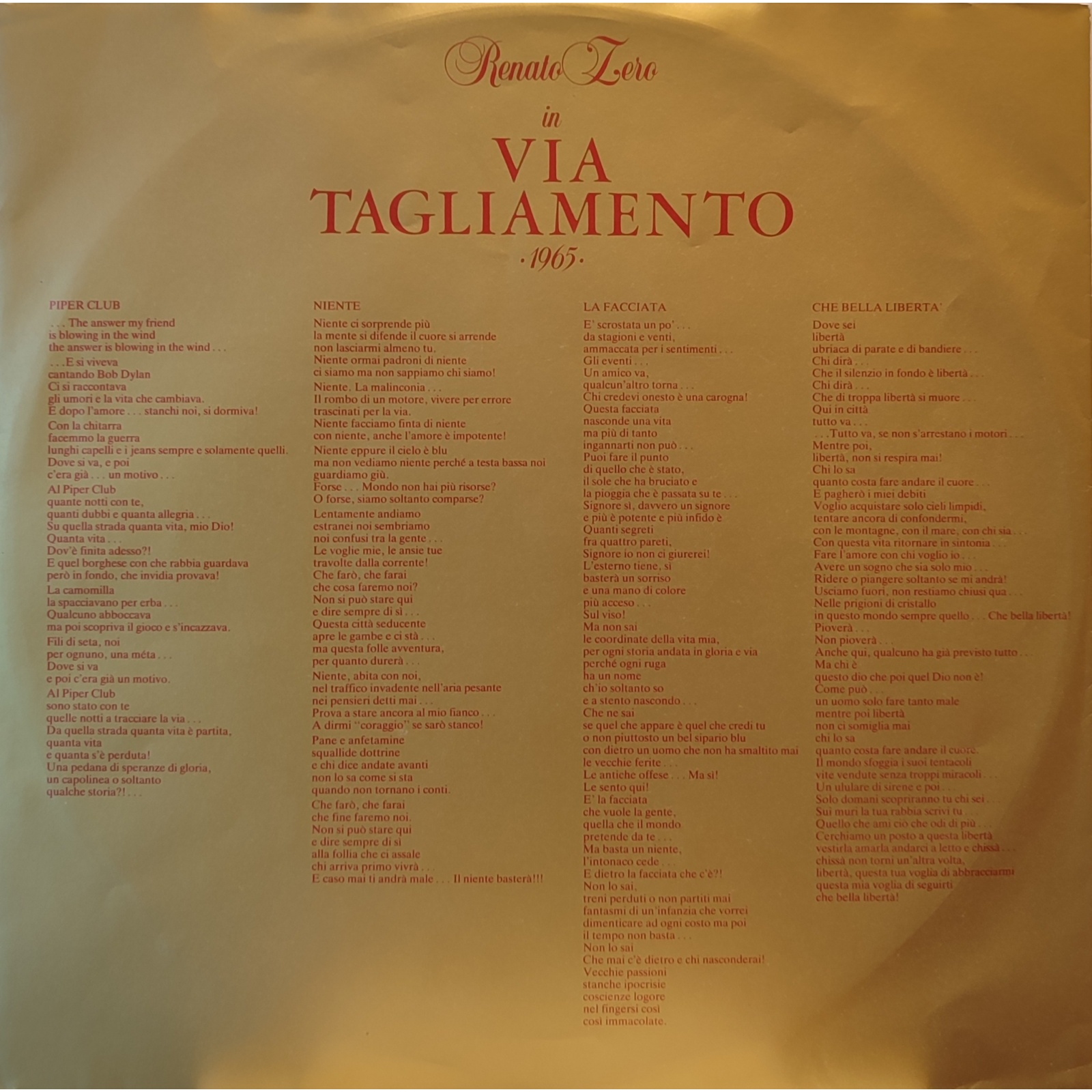 Questo doppio album è dedicato allo storico locale romano Piper, situato proprio in via Tagliamento, dove Renato Zero cominciò il suo percorso artistico.