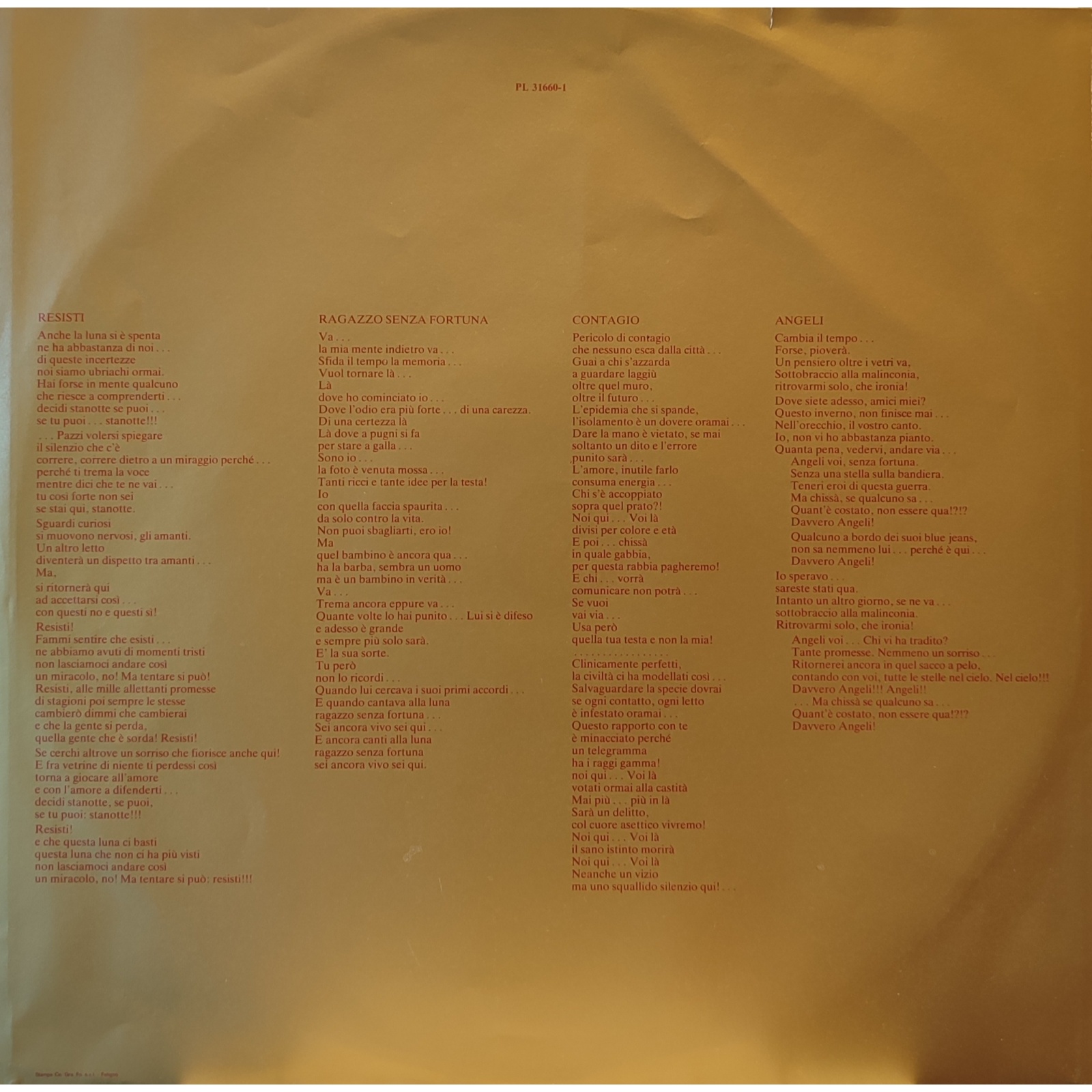 Datato 1982, etichetta Zerolandia, doppio LP gatefold comprensivo di inner sleeve originali con testi.