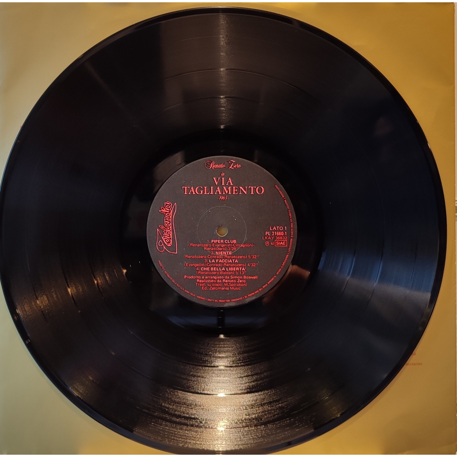 Prima edizione italiana, in vinile di seconda mano, del nono album in studio del cantautore italiano Renato Zero,"Via Tagliamento 1965/1970".