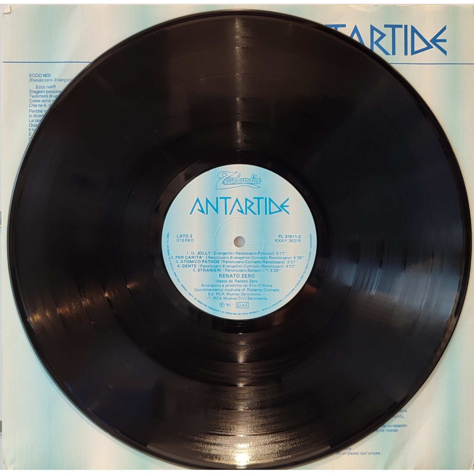 Prima edizione italiana, in vinile di seconda mano, dell'ottavo album in studio del cantautore italiano Renato Zero,"Artide Antartide".