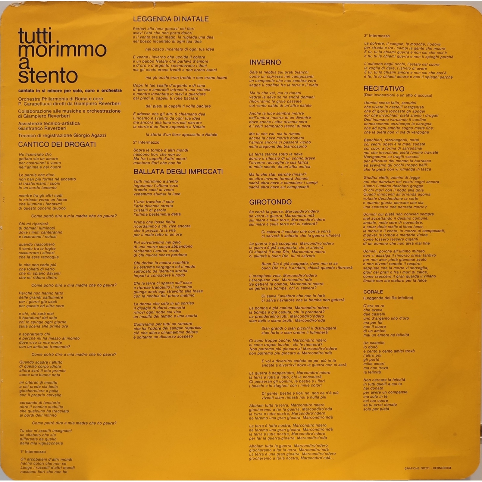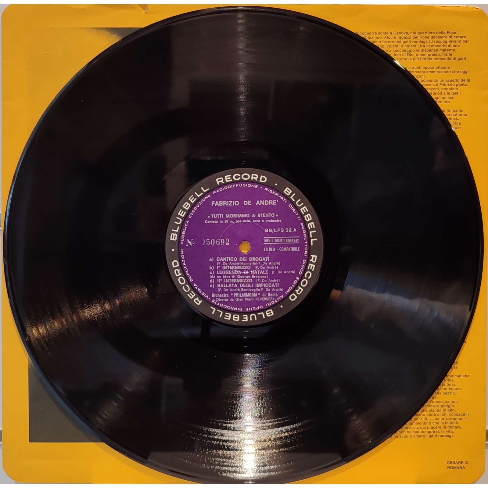 Seconda versione della prima edizione italiana, in vinile di seconda mano, dell'album "Tutti morimmo a stento" del cantautore italiano Fabrizio De Andrè.