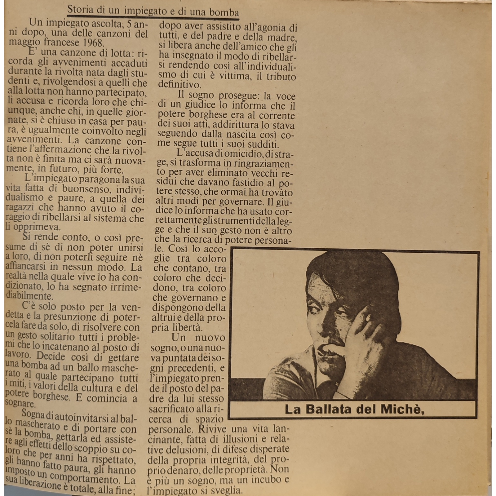 I brani dell'album sono collegati fra loro da un filo narrativo: un giovane impiegato che, dopo aver ascoltato un canto del Maggio francese, entra in crisi e decide di ribellarsi, senza però rinunciare al suo individualismo.