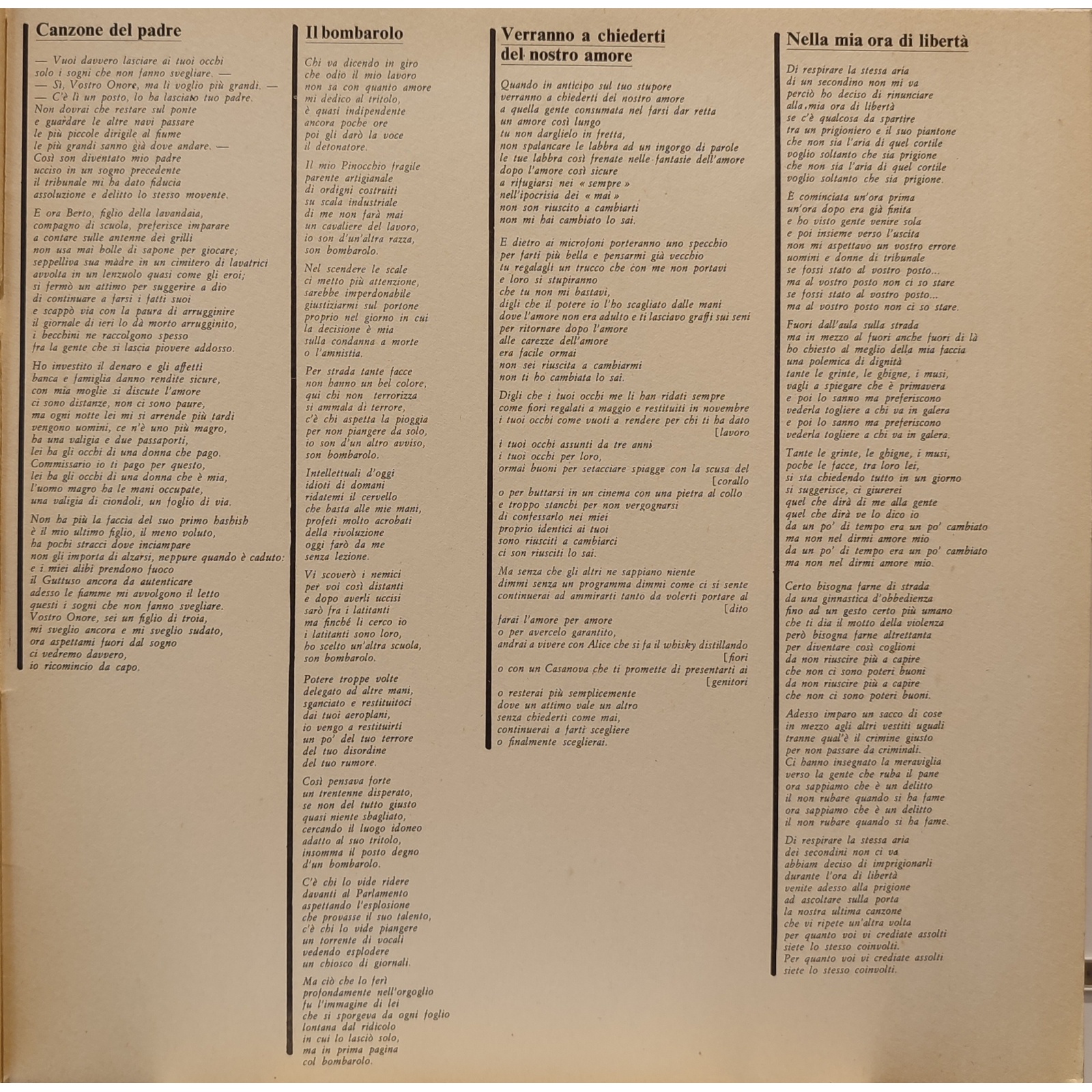 Datato 1973, etichetta Produttori Associati, gatefold comprensivo di inserto sfogliabile in perfette condizioni di conservazione.