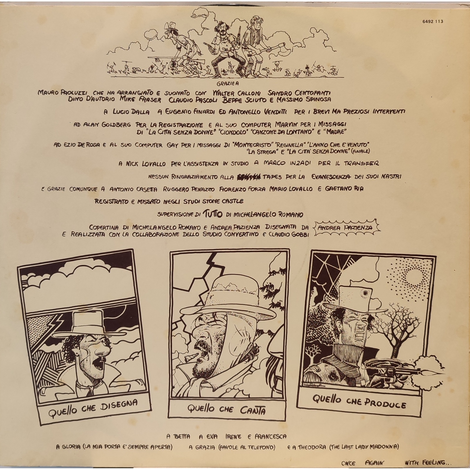 La copertina (che si apre in tre parti e raffigura il cantautore mentre tenta di scappare nudo da una torre), ideata da Michelangelo Romano e da Andrea Pazienza, è disegnata, come per il precedente album, dallo stesso Andrea Pazienza, così come i disegni interni e quelli della inner sleeve.