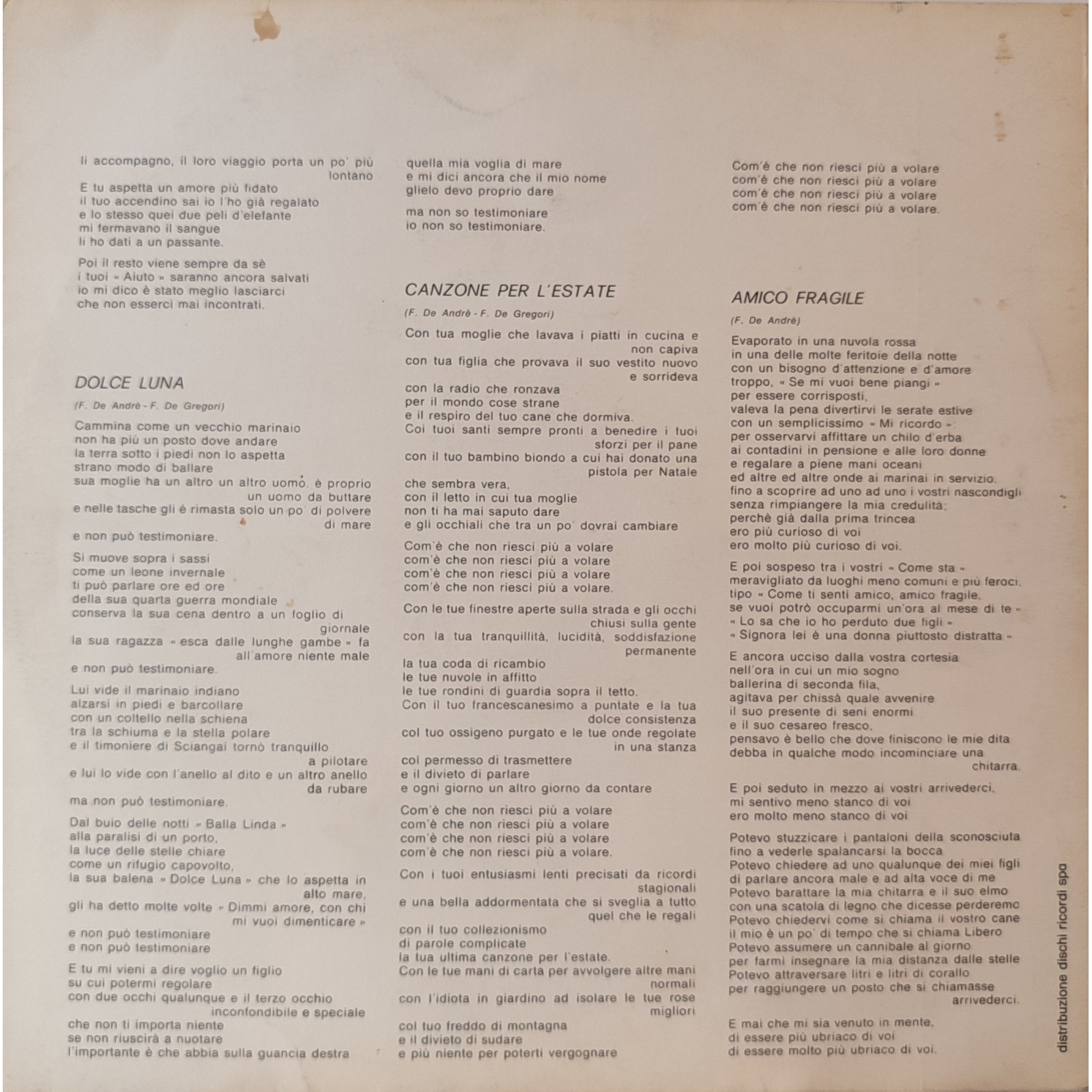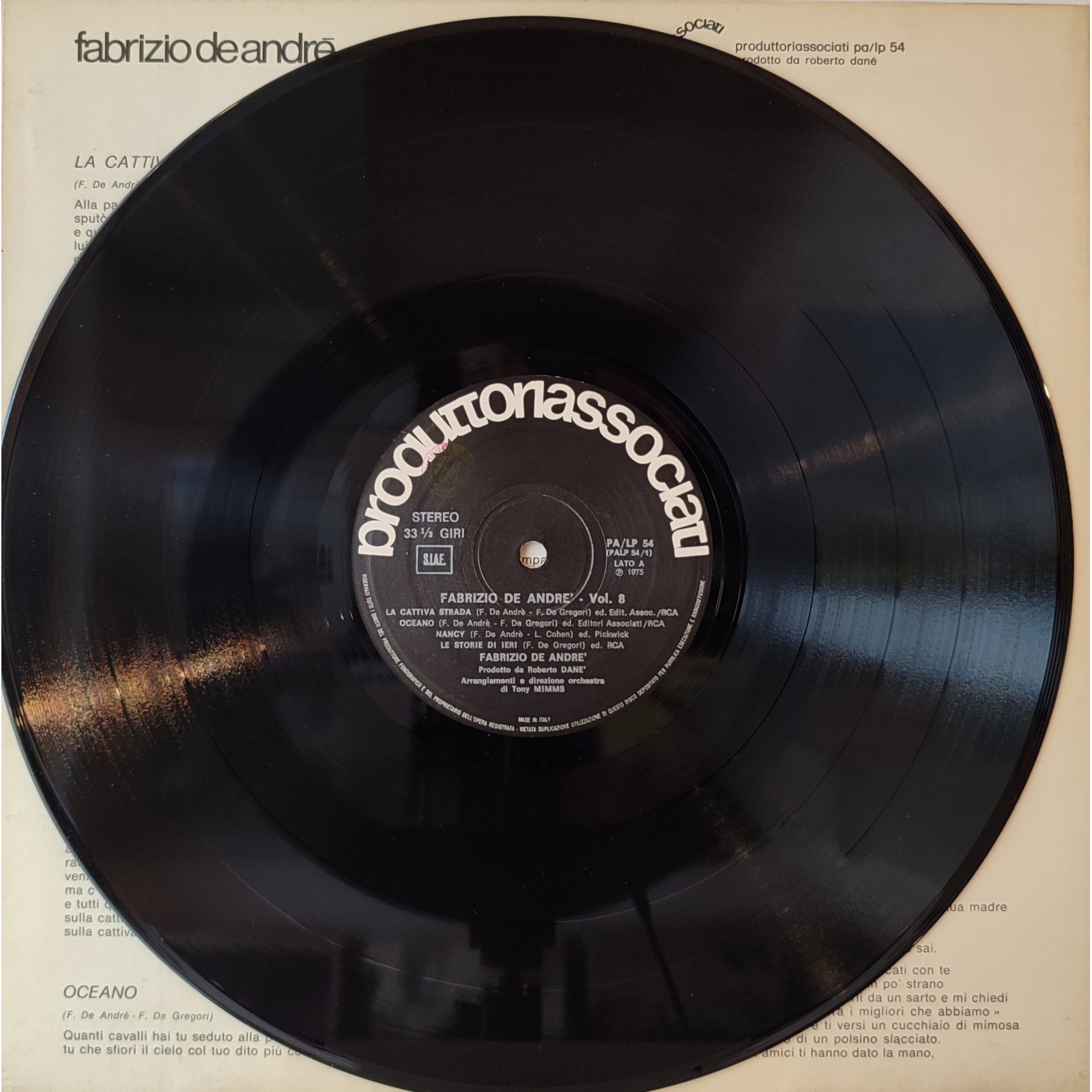 Datato 1975, etichetta Produttori Associati, gatefold, comprensivo di inner sleeve originale con testi.