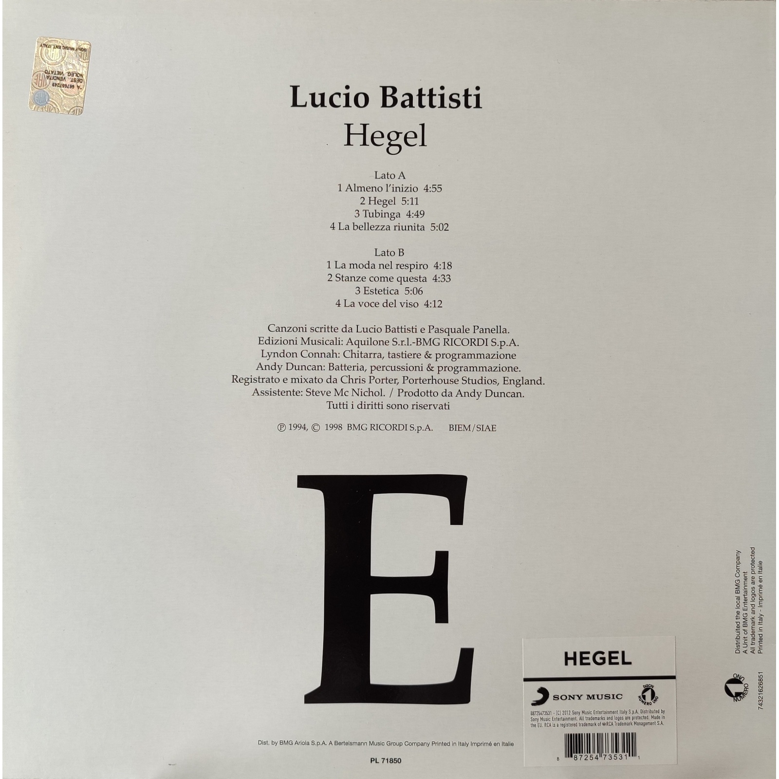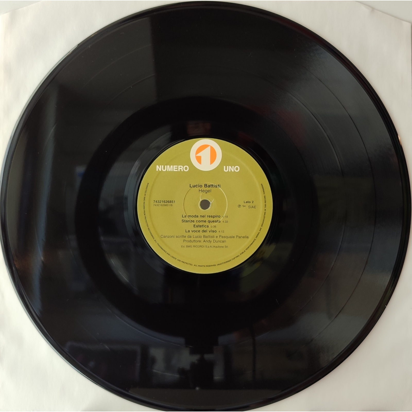 Ristampa italiana, in vinile di seconda mano, del ventesimo e ultimo album di Lucio Battisti,"Hegel".