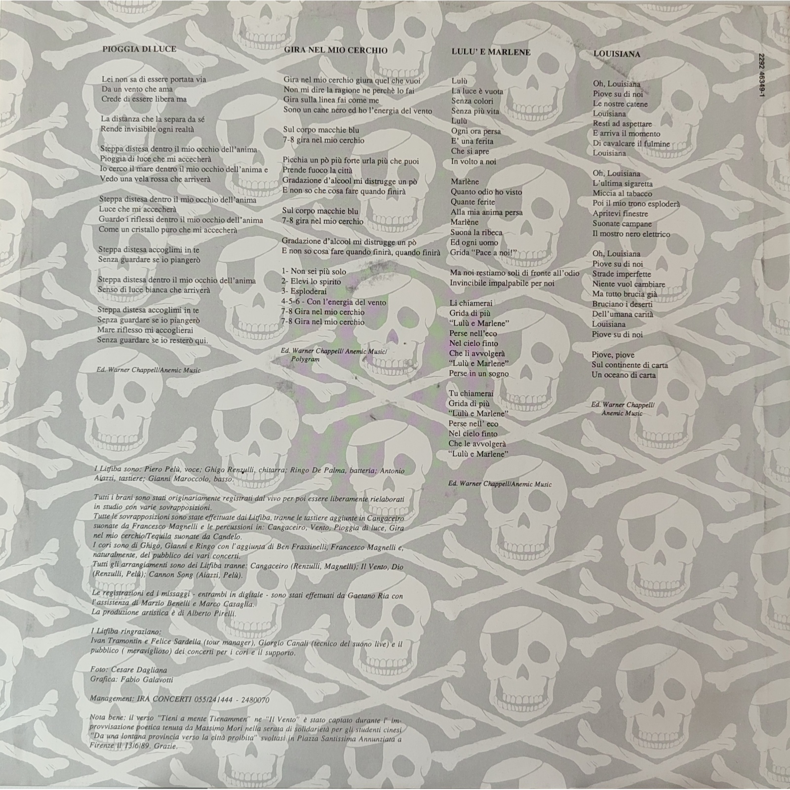 Prima edizione italiana, in vinile di seconda mano, del secondo live del gruppo rock italiano Litfiba, "Pirata".
